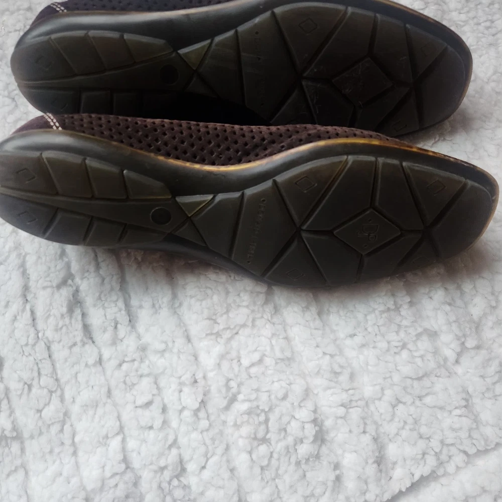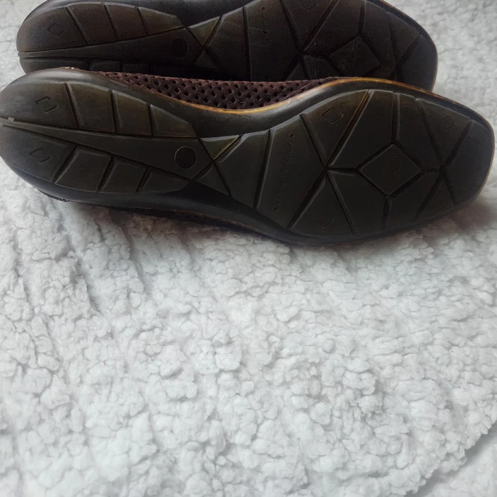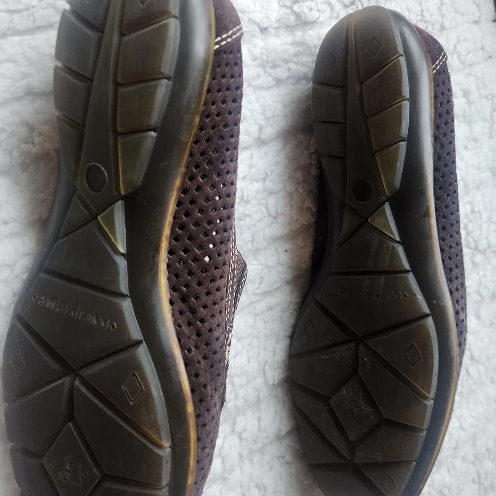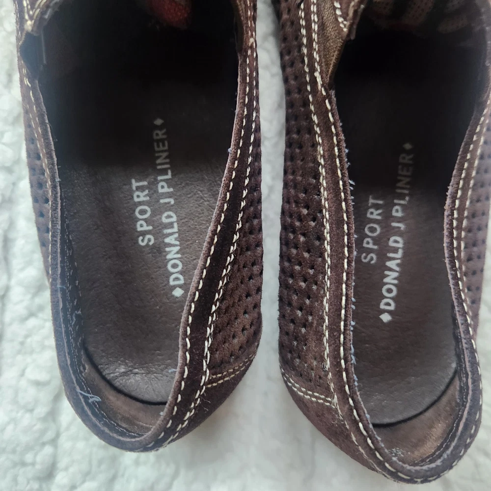 The product is a pair of Donald J Pliner sport shoes for women in size 7.5 with a leather upper in brown color. It features a slip-on style with a rubber bottom, making it suitable for casual occasions during the spring, summer, and fall seasons. The shoes are made with high-quality leather lining and insole materials, ensuring both comfort and durability. Perfect for women looking for a stylish and practical flat shoe option.
