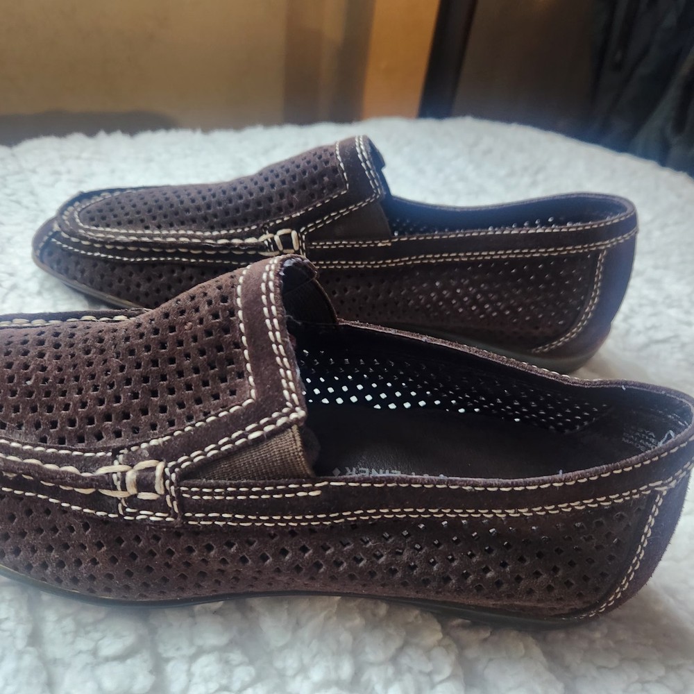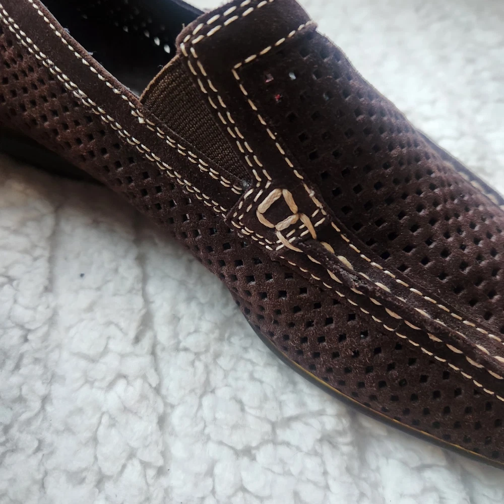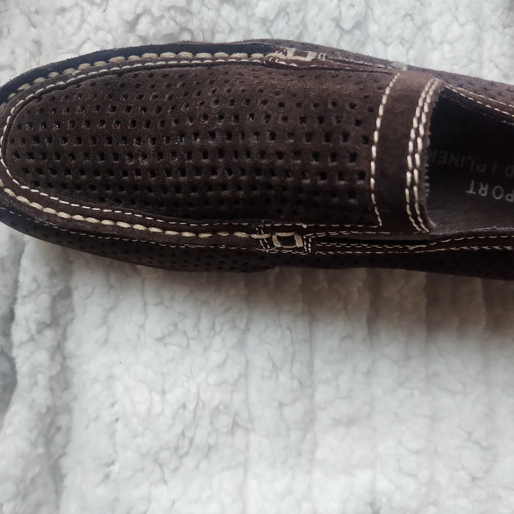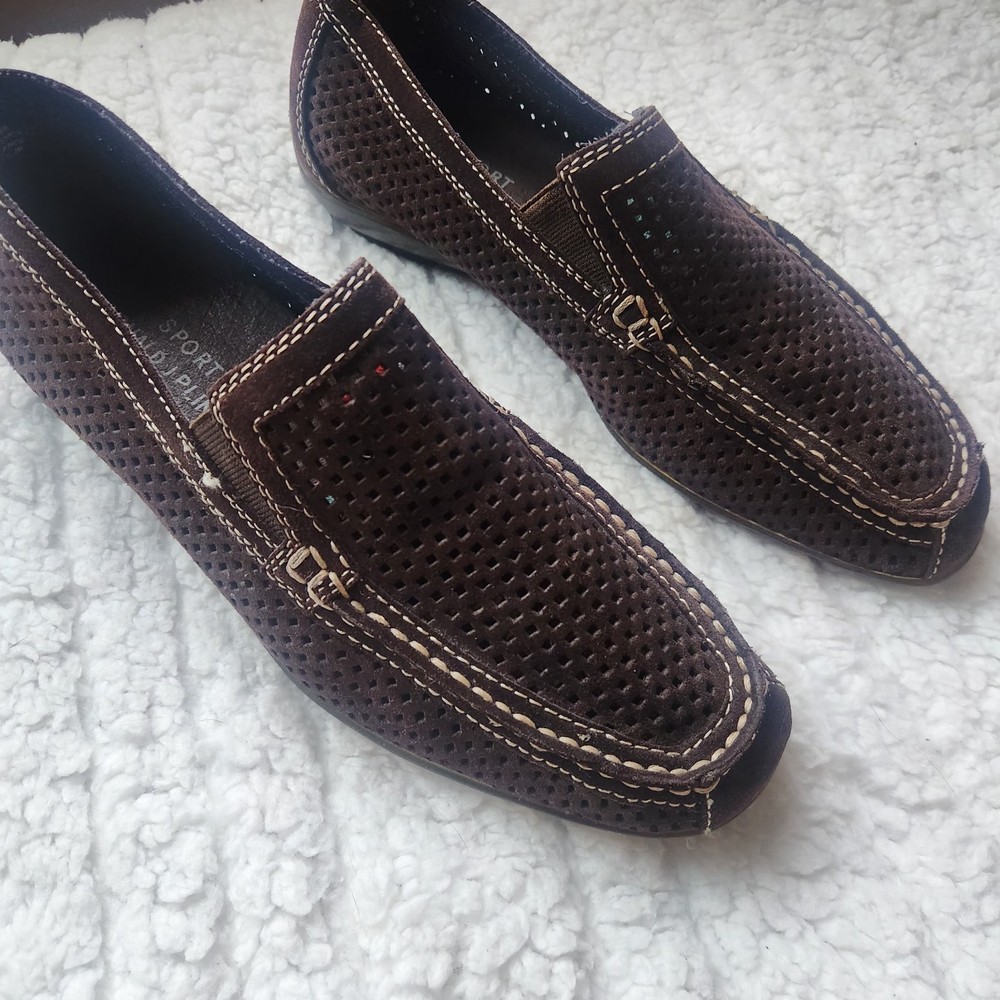 The product is a pair of Donald J Pliner sport shoes for women in size 7.5 with a leather upper in brown color. It features a slip-on style with a rubber bottom, making it suitable for casual occasions during the spring, summer, and fall seasons. The shoes are made with high-quality leather lining and insole materials, ensuring both comfort and durability. Perfect for women looking for a stylish and practical flat shoe option.