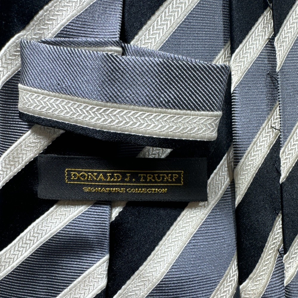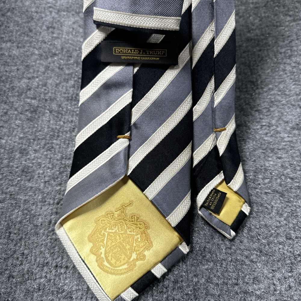 Elevate your formal look with this signature tie of Donald J. Trump. Crafted with precision, this gray tie is perfect for any occasion. The tie features the iconic Trump logo, adding a touch of sophistication to your outfit. Designed for men, this tie is a must-have accessory for any stylish professional. It is made of high-quality materials, ensuring durability and long-lasting wear. Perfect for any event, this Donald J. Trump signature tie is an excellent addition to your wardrobe.