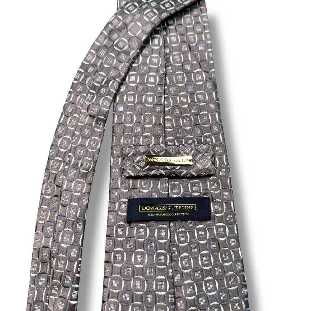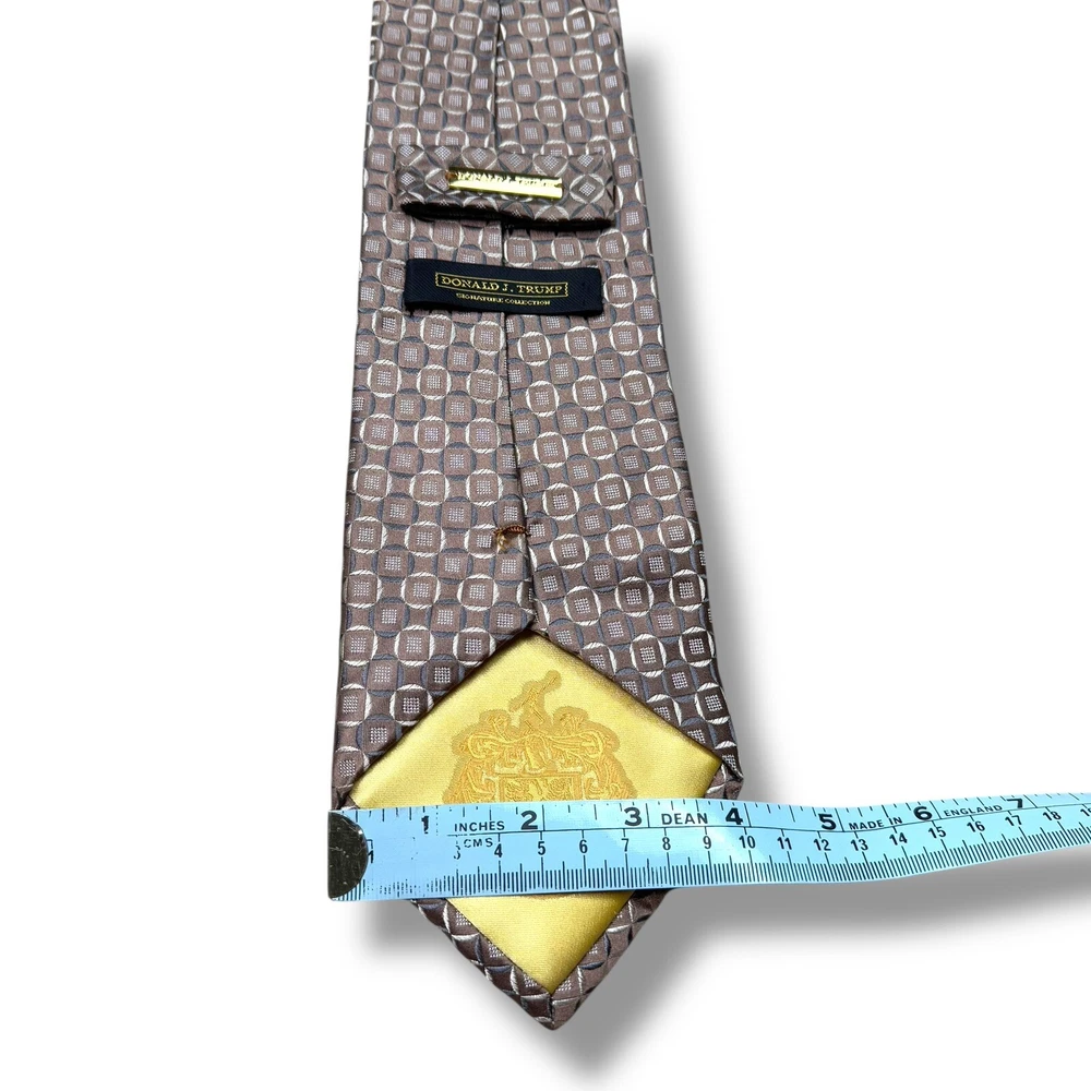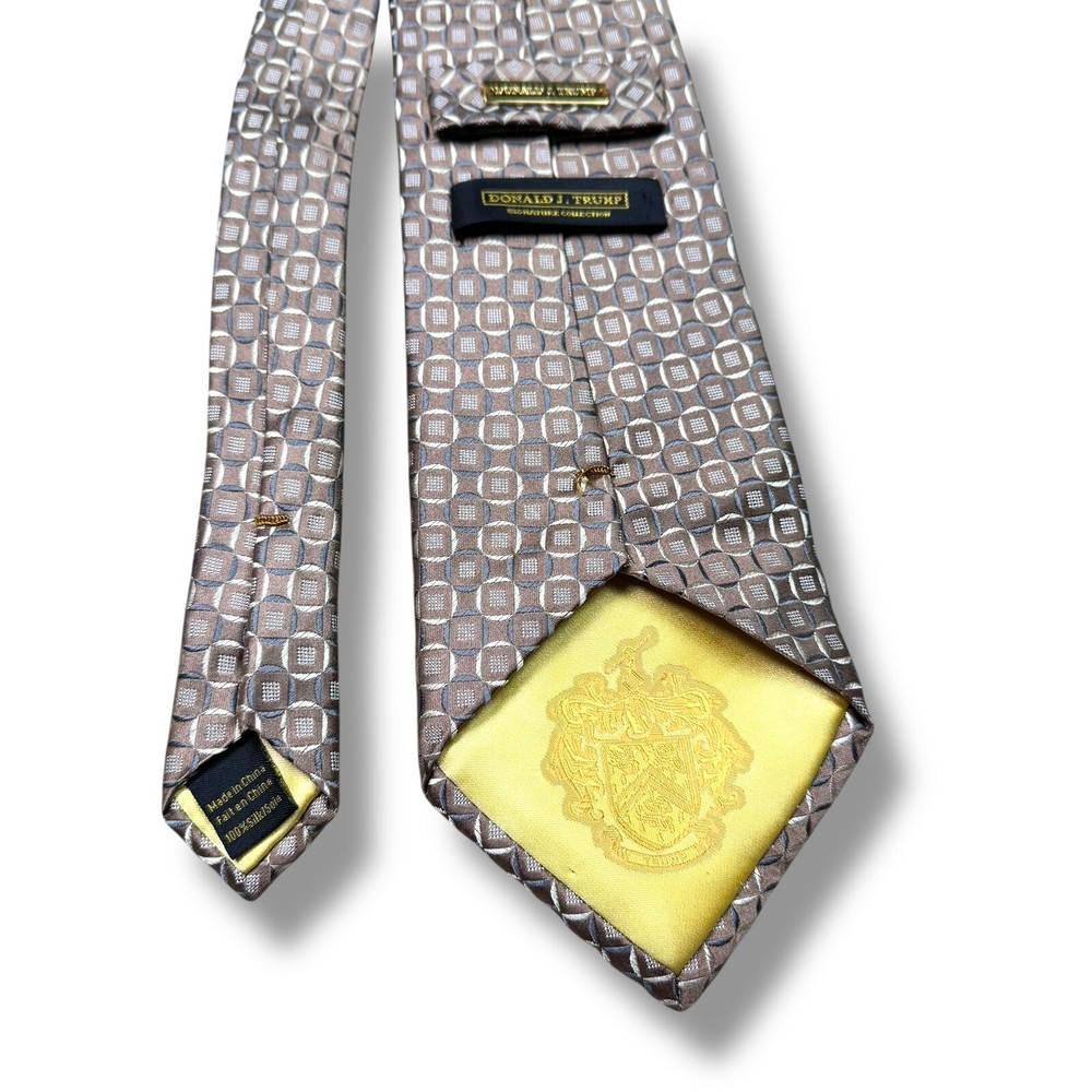 Fabric Type: Silk Material: Silk UPC: Does not apply Theme: Hawaiian, Hawaiian Shirt Character: Signature Series Style: Tie Item Width: Classic Features: Gold Bar Item Length: Classic (57"-60") Type: Tie Department: Men Brand: Donald J. Trump Attachment Type: Tied Color: Beige gtin13: Does not apply Pattern: Geometric Size: 60”