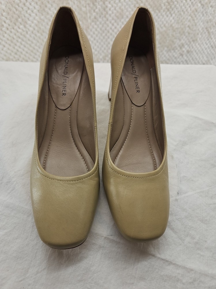 Elevate your style with these stunning Donald Pliner Coran 2 Model Mirrored Block Heels. The square toe and slip-on closure make them easy to wear, while the mid heel height provides a comfortable lift. The brown color and logo accents give them a touch of elegance, perfect for any business or formal occasion. Crafted with high-quality leather, these pumps are durable and stylish. The outsole material is also leather, making them perfect for any season. These shoes are a must-have for any fashion-forward woman who wants to look her best. Very gently used as seen in photos...B1106