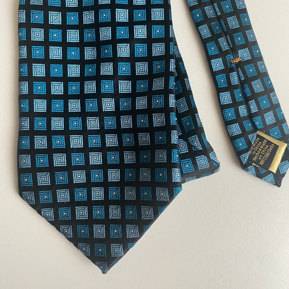 Donald Trump Signature Blue Geometric Silk Tie 60x3.5 with Gold Bar Accent