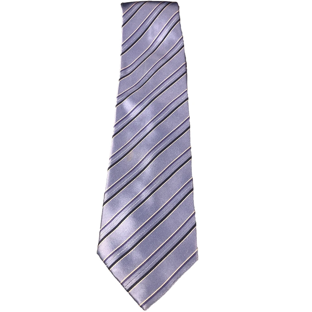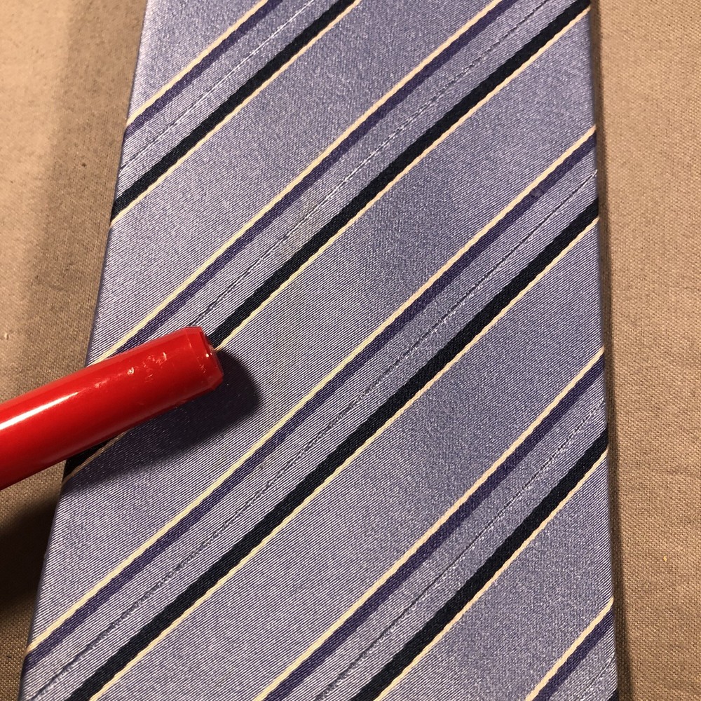 Donald Trump Signature Collection Blue White Striped 100% Silk Tie