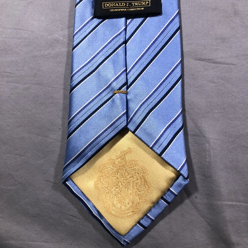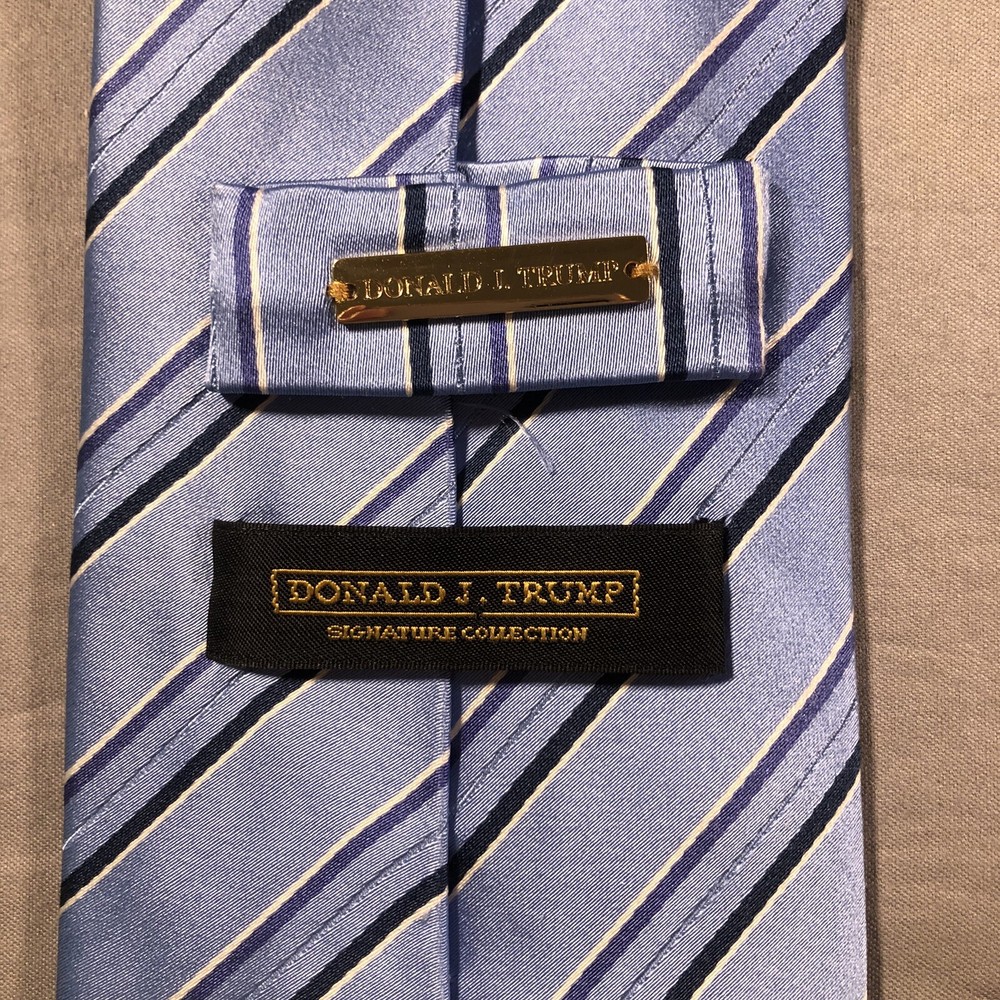 Brand:Donald J. TrumpFeatures:AdjustableDepartment:MenFabric Type:WovenTheme:StripedAttachment Type:TiedType:TieCharacter:BlueSize:One SizeItem Width:ClassicStyle:DesignerMaterial:100% Silkgtin13:Does not applyVintage:NoUPC:Does not applyColor:BlueItem Length:Classic (57"-60")Pattern:Striped