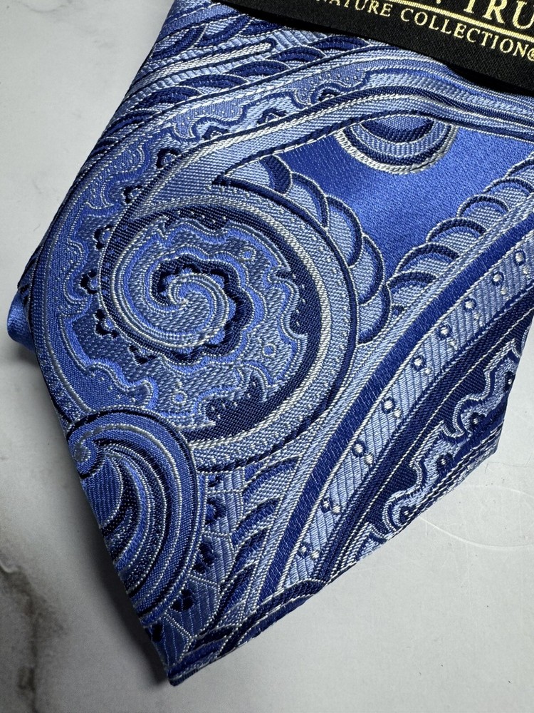 HomeDonald Trump Signature Silver Blue Paisley Necktie NEW
