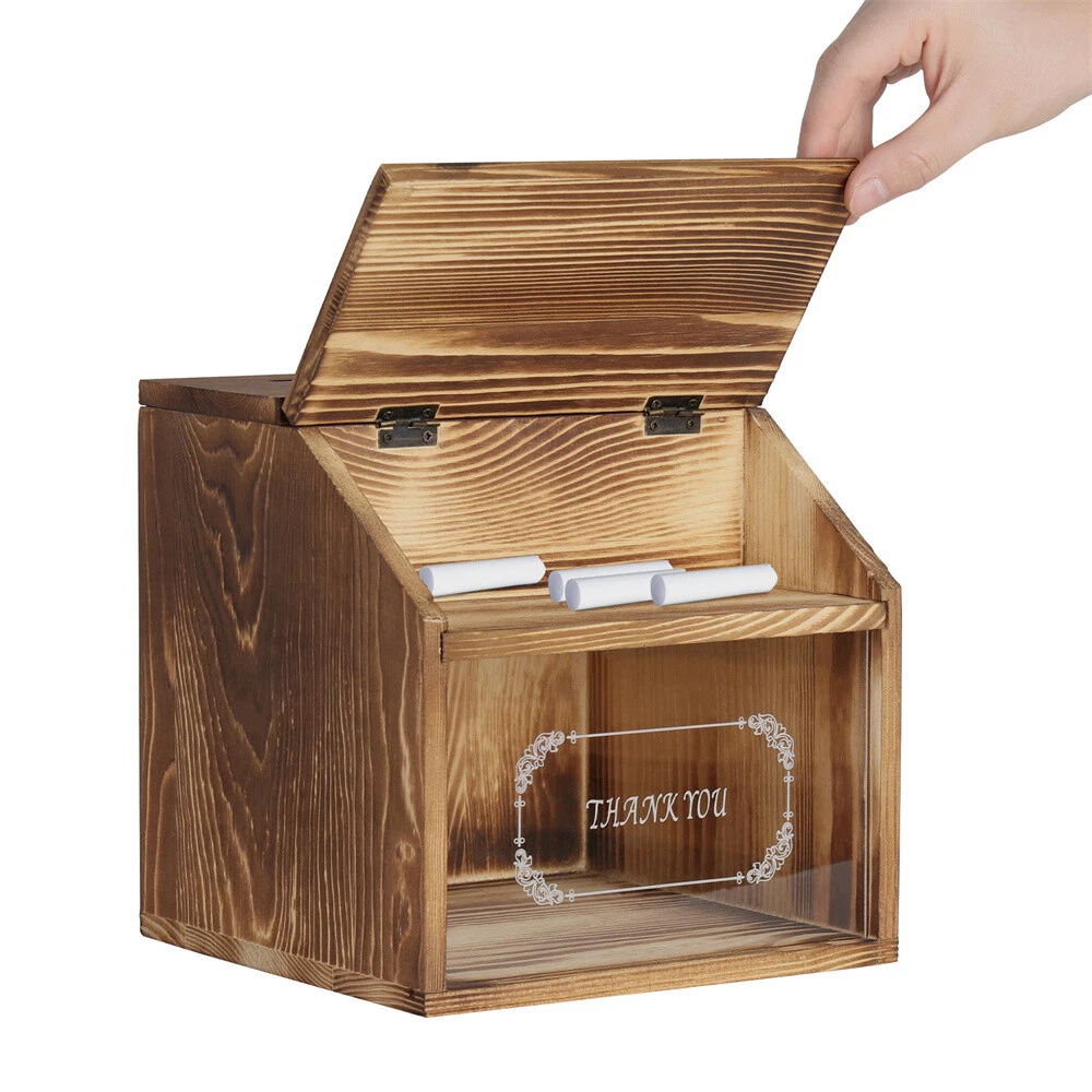 Suggestion Box Donation Ballot Box with Lock, Blackboard, Clear Acrylic Viewing Suggestion Box Donation Ballot Box with Lock, Blackboard, Clear Acrylic Viewing US seller, fast shipping. Features: Our suggestion box is a safe and durable way for you to collect feedback, suggestions and donations. Solid pine wood with a natural brown grain that makes it easy to match any interior, a versatile and stylish donation box, tip jar, and suggestion box all in one. Delivered fully assembled for your convenience, this suggestion box includes a locking mechanism for added security, ensuring that all user information is kept safe - whether you're using it for donations, comments, or general feedback. Its wall mount hook design makes it easy for you to hang it in restaurants, coffee shops, or any other public space. Our donation boxes provide the perfect solution for collecting tips, donations and feedback in style and quality. Specifications: Type:Suggestion box Color:Brown Material:Pine 80%+20% Acrylic Net Weight:0.95kg/2.09lbs Suitable for: Give advice, Fundraising, Voting, Tipping Product Dimension:20x20x19cm/7.87x7.87x7.48inch Package Weight: 1.5kg/3.3lbs Package Size: 21.5x21.5x22/8.46x8.46x8.66inch Package Includes: 1 x Suggestion box 1 x Instruction Note - Please refer to the measurement. Tiny measuring error is allowable in normal range. - There might be a little color difference due to the monitor, camera or other factors, please refer to the physical item. Payment Delivery details Terms of sales About us Contact us Payment Delivery details We ship orders within 24 hours of payment. Orders are shipped daily Monday - Friday Orders are shipped through USPS and FedEx, normally take 3-6 days to arrive! Terms of sales Pls contact us if there is any problems with your order via ebay message. we will try our best to resolve it to your satisfaction! About us We are a store, mainly run home garden kitchen items, also, we are professional makeup case factory. We work with a good quality OEM supplier and factory. Help you and us save money greatly. Contact us If you have any questions or any helps, pls feel free to contact us via ebay message. We will reply back to you in 24 business hours.