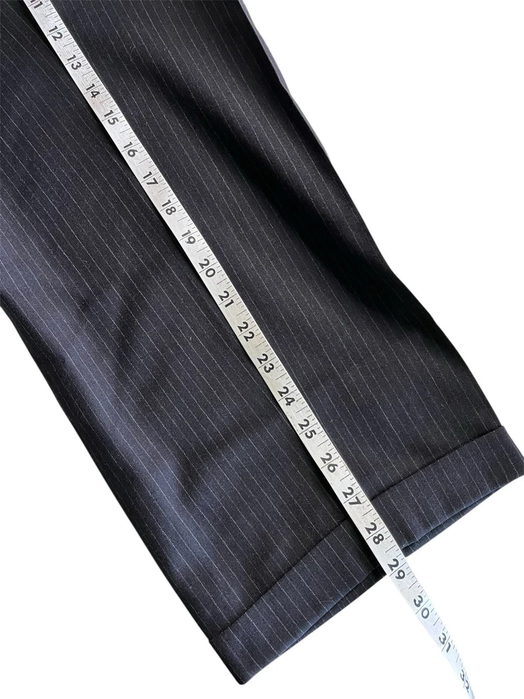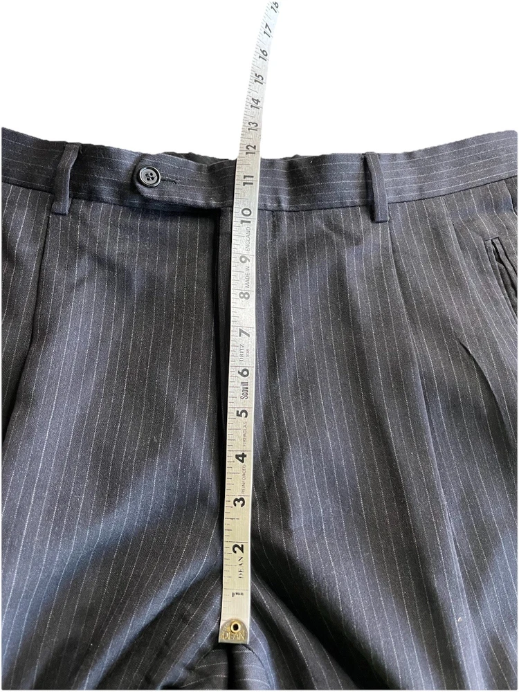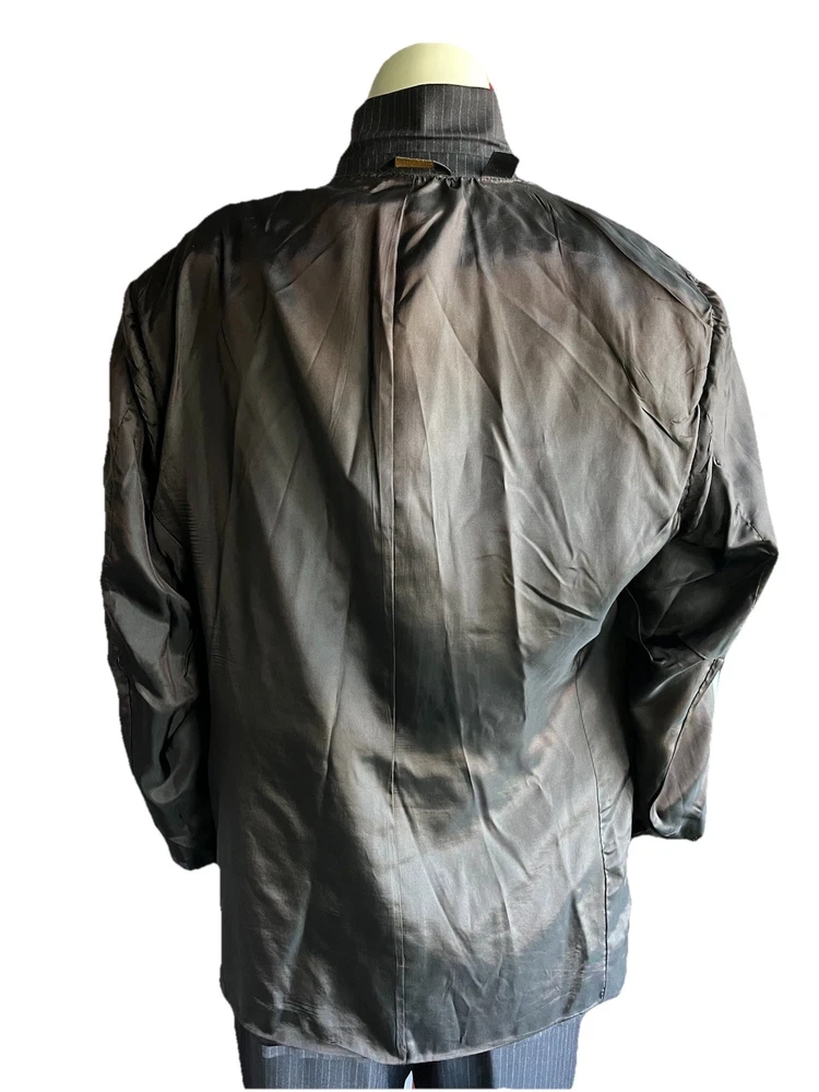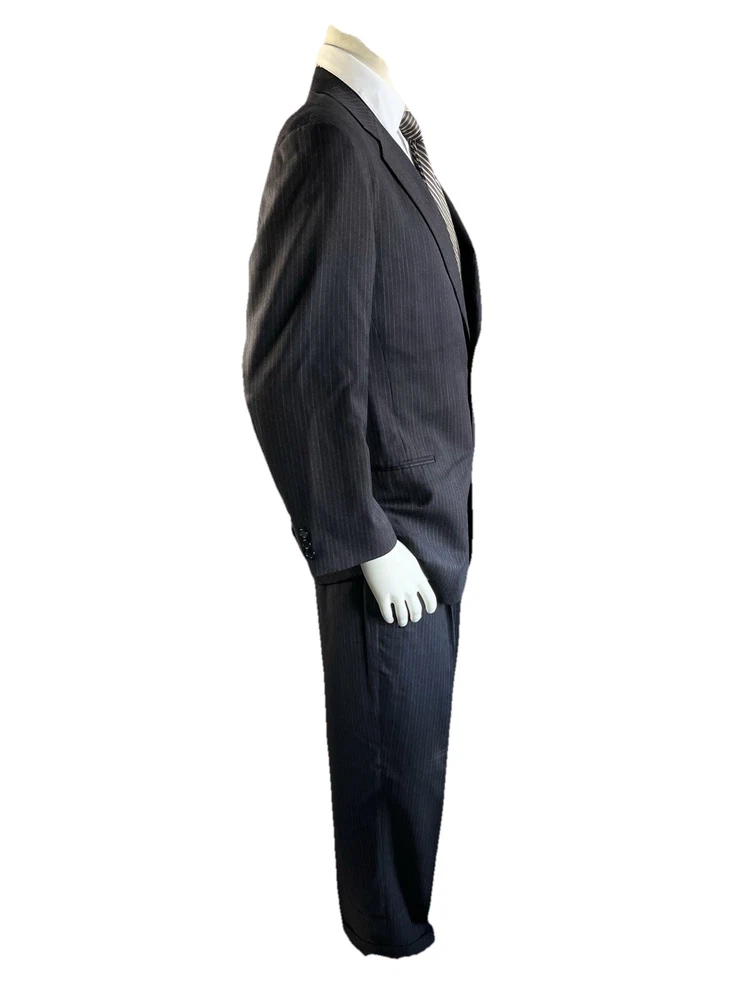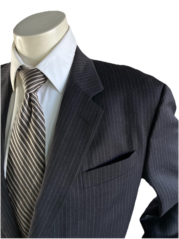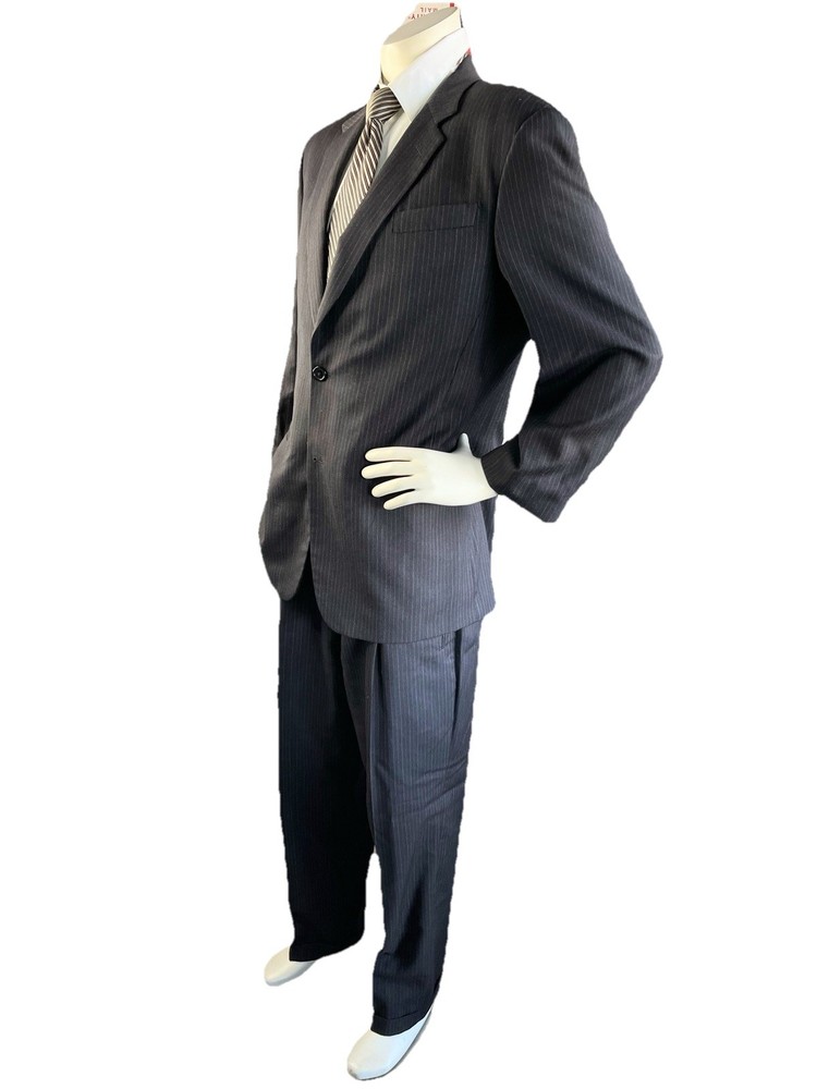 Front Type: Pleated Jacket Vent Style: Ventless Color: Black Jacket/Coat Length: Regular Number of Pieces: 2 Piece Jacket Cut: Single Breasted Style: 2 Pieces Material: Wool Waist Size: 34 in Chest Size: 42 Theme: Mens; Suit; Suit Seperate; Suit Jacket; Blazer; Sport Coat; Old M Brand: Donna Karan Jacket Front Button Style: Three-Button Type: Suit Vintage: No Country/Region of Manufacture: Italy Pattern: Stripe Fit: Classic Jacket Lapel Style: Notch Size Type: Regular Size: 42 Department: Men Inseam: 29 in