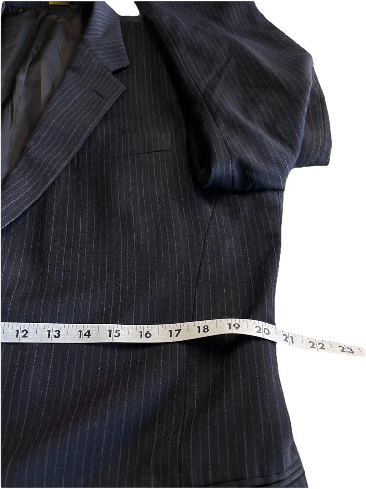 1. Great communication as we worked to a best offer price. Wonderful jacket, practically new. The measurements listed helped in my selection process. Many other listers do not choose to provide key measurements. For suits, blazers and jackets, I think having these numbers make it so much easier to decide. The jacket was well packaged and shipped on time [arrived a day earlier]. This is an A++++ ebayer and would do business again.