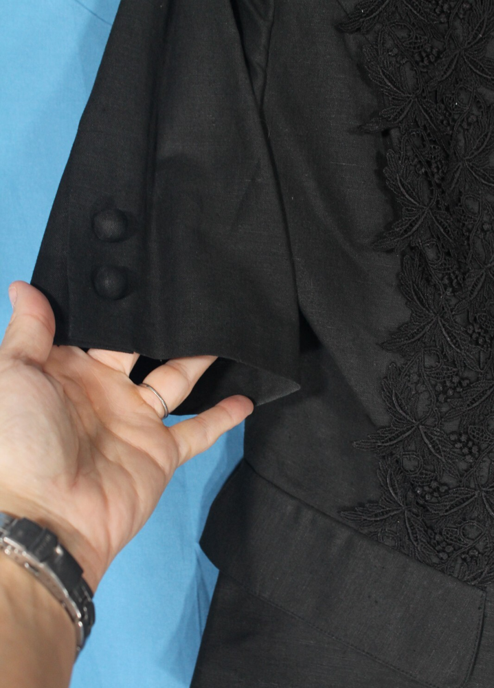 In very gently used condition. 51% Linen, 41% cotton, 8% polyester. MEASUREMENTS: Bust 34", Waist 24", Hips 32", Length 25" We are so thankful for our customers! However, we have thousands of listings, and therefore receive hundreds of messages, every single day. So, if you are asking about a price drop, or a shipping price drop, or asking for extra measurements, or to add additional photos, please allow me to answer you here, No thanks. If your question is not one of those questions, we will be happy to answer you individually. YES...WE DO COMBINE DOMESTIC SHIPPING. Extra jewelry items ship for $2 each (except for large jewelry lots). We will refund the difference as we are mailing out.....we hope you enjoy shopping with us! We encourage you to read the description and check all photos.
