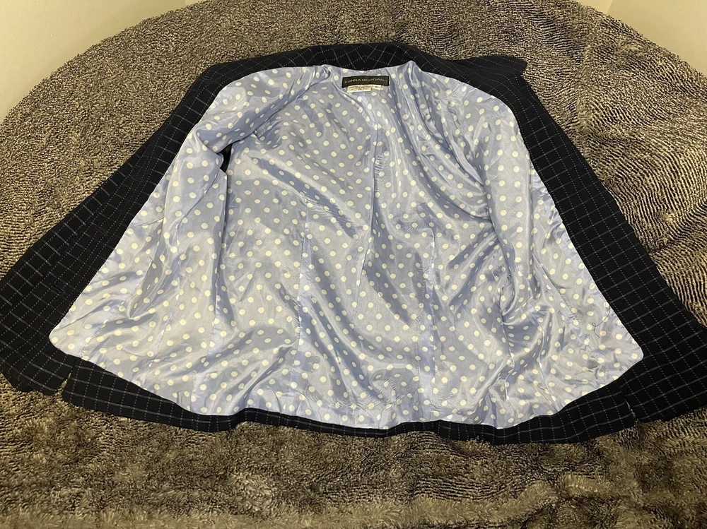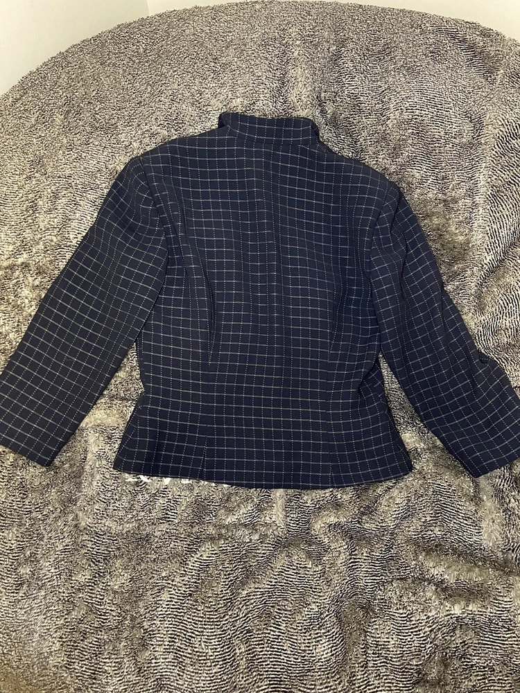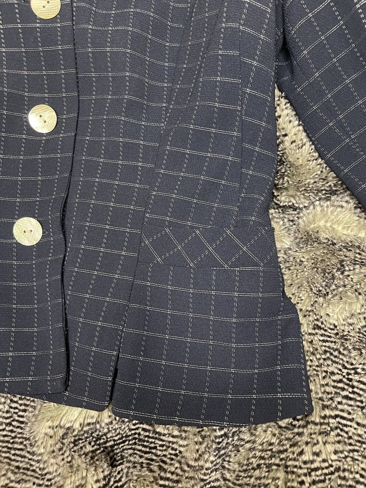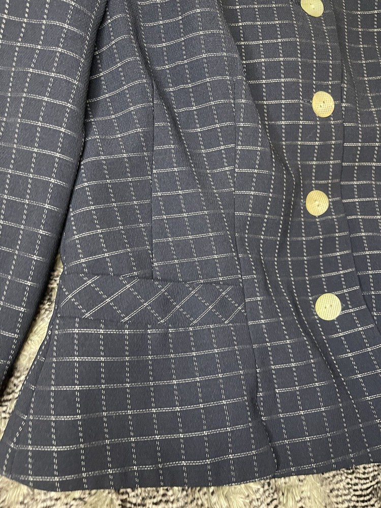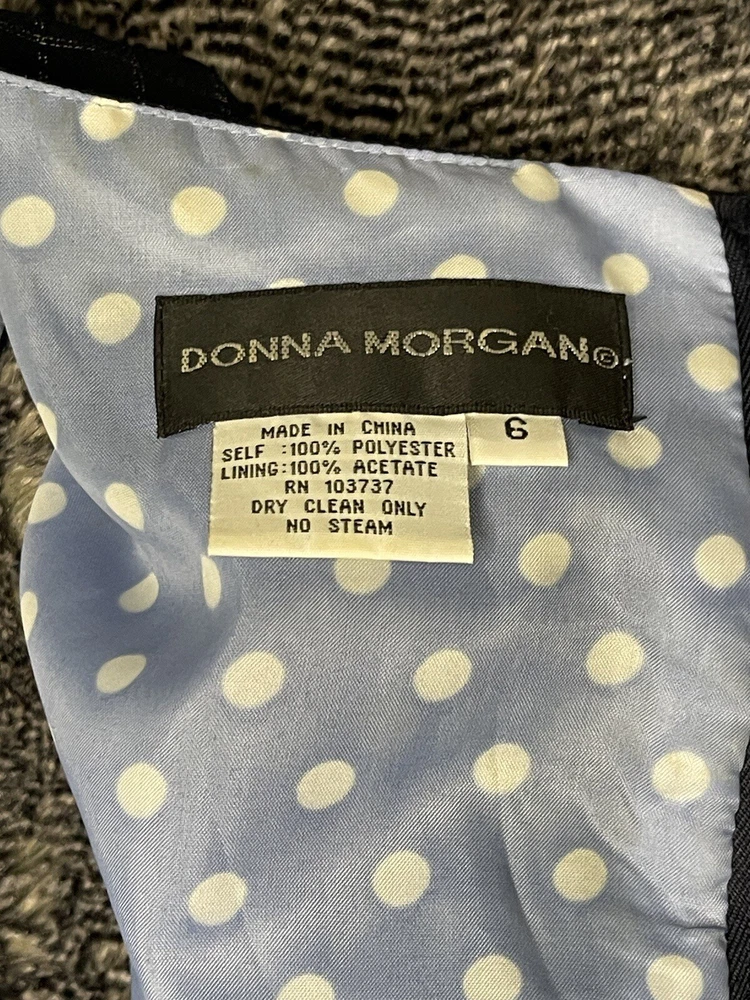Elevate your style with this stunning Donna Morgan suit jacket in a beautiful blue and white plaid pattern. This versatile piece is perfect for any occasion, whether you're attending a wedding, a party, or a business meeting. The jacket features a notch lapel style, with no button on the sleeve, and a five-button front button style. Crafted from 100% polyester fabric, this suit jacket is full-lined with acetate material, providing a comfortable fit. It also has pockets for added convenience. The jacket is dry clean only and is suitable for all seasons. This suit jacket is perfect for women who want to look their best without compromising on comfort.