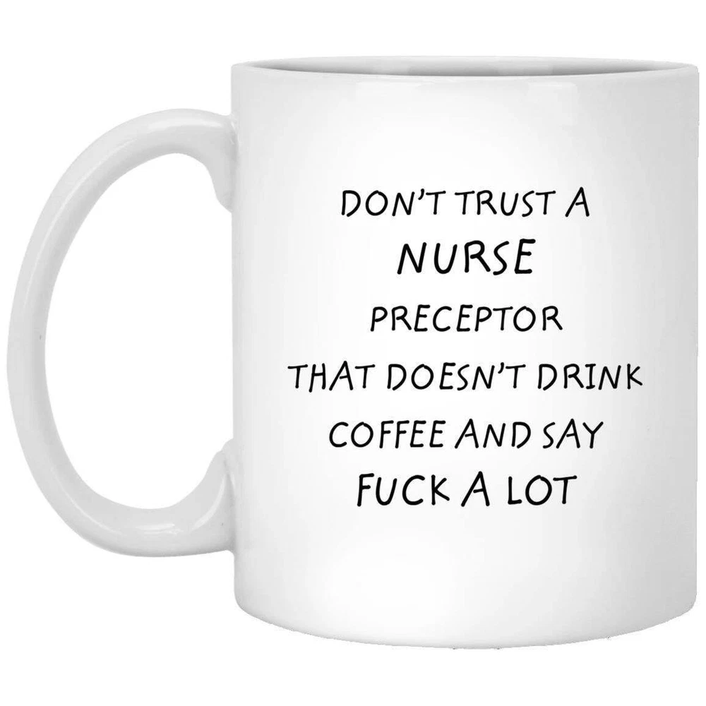 Don't Trust A Nurse Preceptor Funny Gift Best Nurse Gift Custom Nurse Mug Product Details.. This high quality 11oz. ceramic white mug has a premium hard coat that provides crisp and vibrant color reproduction sure to last for years. Perfect for all hot & cold beverages. The highest quality printing possible is used. It will never fade no matter how many times you wash it. Material: 100% Ceramic. Print both sides. Dishwasher and Microwave Safe. High Gloss + Premium White Finish. Printed in the U.S.A. Personalized & Custom. We support personalized and custom mug to add custom, when placing an order, you can add notes to the "order note" in shipping address section. Also you can contact us directly via message. Shipping Info. Ready to ship in 1 to 2 business days, All products are made-to-order and proudly printed in the United States. Shipped by USPS and DHL, You will receive your order in 5-7 days. Replace & Refund. All products are defective during shipping broken, chipped will be replaced free of charge. You are not satisfied with the product, we will refund 100% money to you. If any other issues arise, please do not hesitate to message, we would be more than happy to assist you.