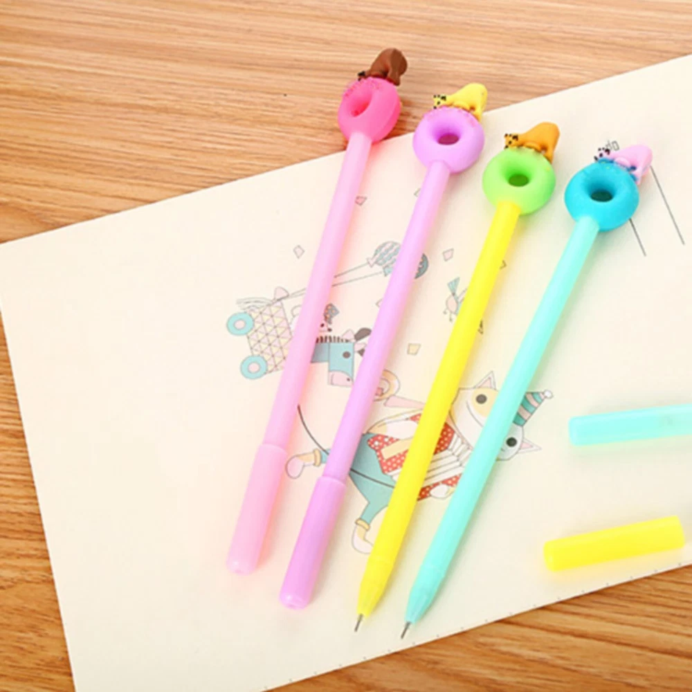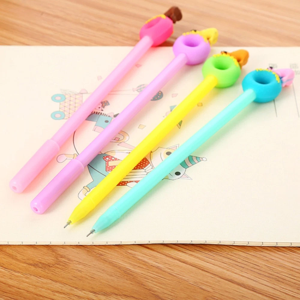 Donut Gel Pen 0.5mm 2ml Liquid Gel Ink Rollerball Pen For School Home Office Features: Great Back to School Stationary, planner or journaling supplies for Christmas, Birthday, Mother's Day, Easter Day, Valentine's Day, Thanksgiving Day, Party, New Year's. ink combined with solid pen construction make this high-performing pen a perfect choice for your home, school, workspace, small business, or traditional office. Special quick dry ink dries immediately after writing to effectively keep your hands and the , even lefties would love it. The non-refillable pen provides value, performance, comfort and style in all , so you get the job done right every time; the pen's cartoon animal is detachable. Very cute, useful and fashion design, creative and interesting props to take with, you will get a lot of compliments on them. Product Description: Material: plastic Size: 19.5cm/7.68in Included: 1x Gel Pen