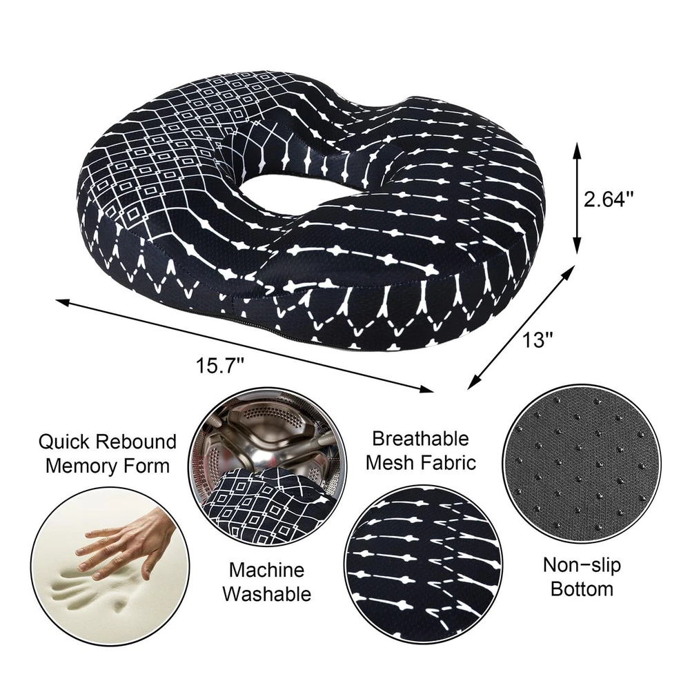 Donut Pillow for Hemorrhoids Seat Cushion for Tailbone Pain Relief - Black Bo...