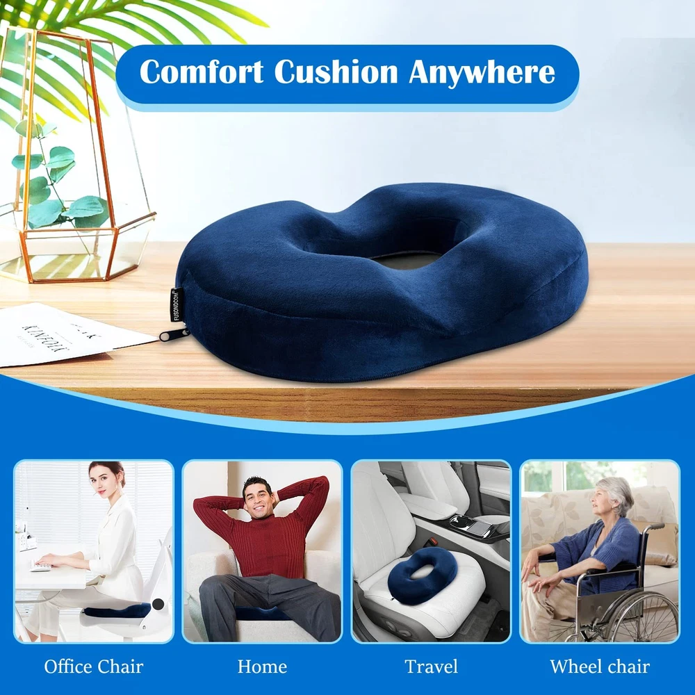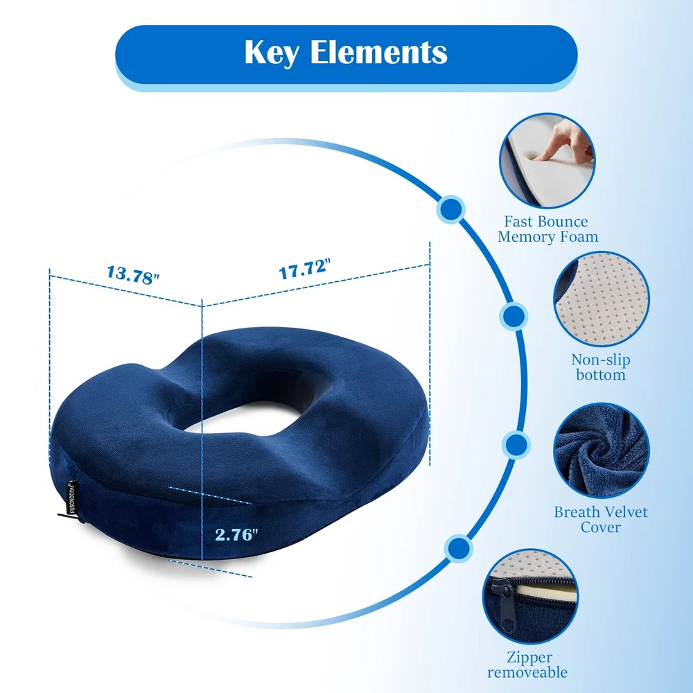 👉 【Donuts Pillow packed in graphic carton】, Makes a great gift for loved ones. Lightweight and Portable for Your Convenience.Use in office and home or travel seat cushions. Please note this lifting Donut cushion,wedge pillow is firm as it needs to be adequately supportive. It is not a soft seat cushions but everlasting comfort donut seat cushion and tailbone pain relief cushion,It can be used on any hard surface to make sitting more comfortable 👉[Durable and supportive to support better posture].donut cushions for pressure relief. Generous Dimensions and Supportive firm Foam Core , office chair cushions size at 17.72" x 13.78" x 2.76" and Donut pillow life saver is suitable for home office essentials as rocking chair cushion,kitchen chair cushion,chair pillow pads,bbl pillow,wheelchair cushions,hemorrhoid pillows, car seat cushion,postpartum pillow butt pillows for sitting,,chair pad, Lifting Cushion. 👉[Machine Washable velvet Cover Stays Fresh and soft]: The donut pillow for hemorrhoids and tailbone pain features a removable cover with breathable velvet material and NON-slip bottom. Simply unzip the cover and put into the washing machine easy to clean. 👉[Tailbone Pain Relief Chair seat Cushion]: With U cut outs at the front and back of the tailbone cushions,Fast Bounce Comfortable donut pillow for tailbone pain relief Postpartum Surgery Bed Sores, lower back pain, sciatica and hip injures, pregnancy pillows,post surgery pillow, hemmoroids pillow,tailbone pillow.doughnut pillow for tailbone 👉[Work with any chairs]:The seat cushion butt donut pillow chair pad can used for computer chair desk chair gaming chair, office chair, wheelchair, Travel outdoor floor seat cushions airplane chair drive chair etc. 👉ERGONOMIC Fast Bounce CIRCLE PILLOW]:Promotes good posture and healthy weight distribution for hours of comfortable sitting. It is a good seat cushion for tailbone pain relief.