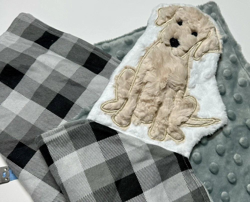 Doodle Puppy Baby Lovey Security Blanket Appliquéd Flannel Minky Dog