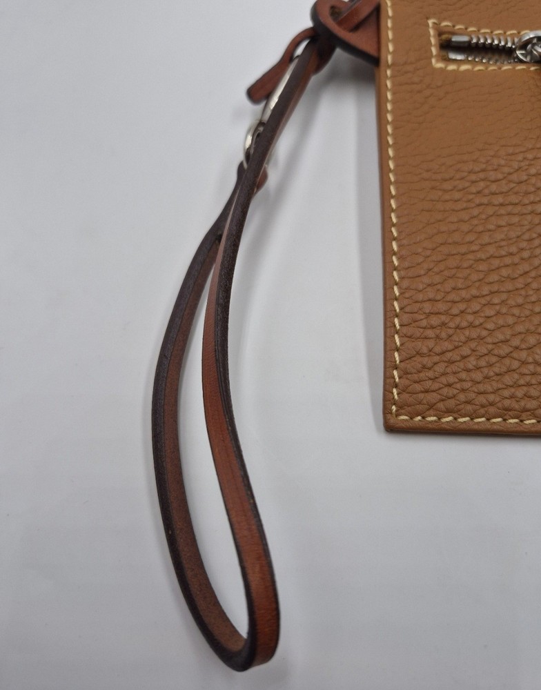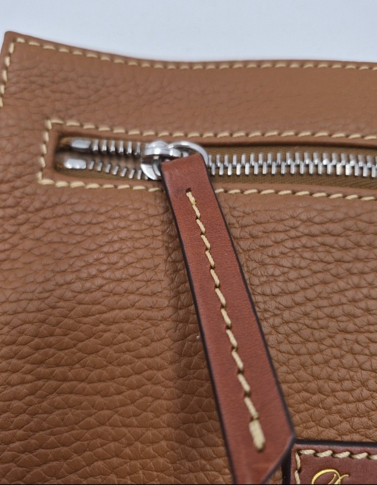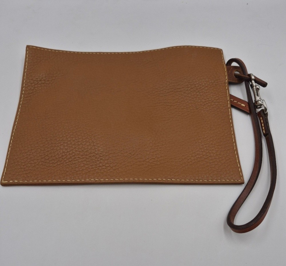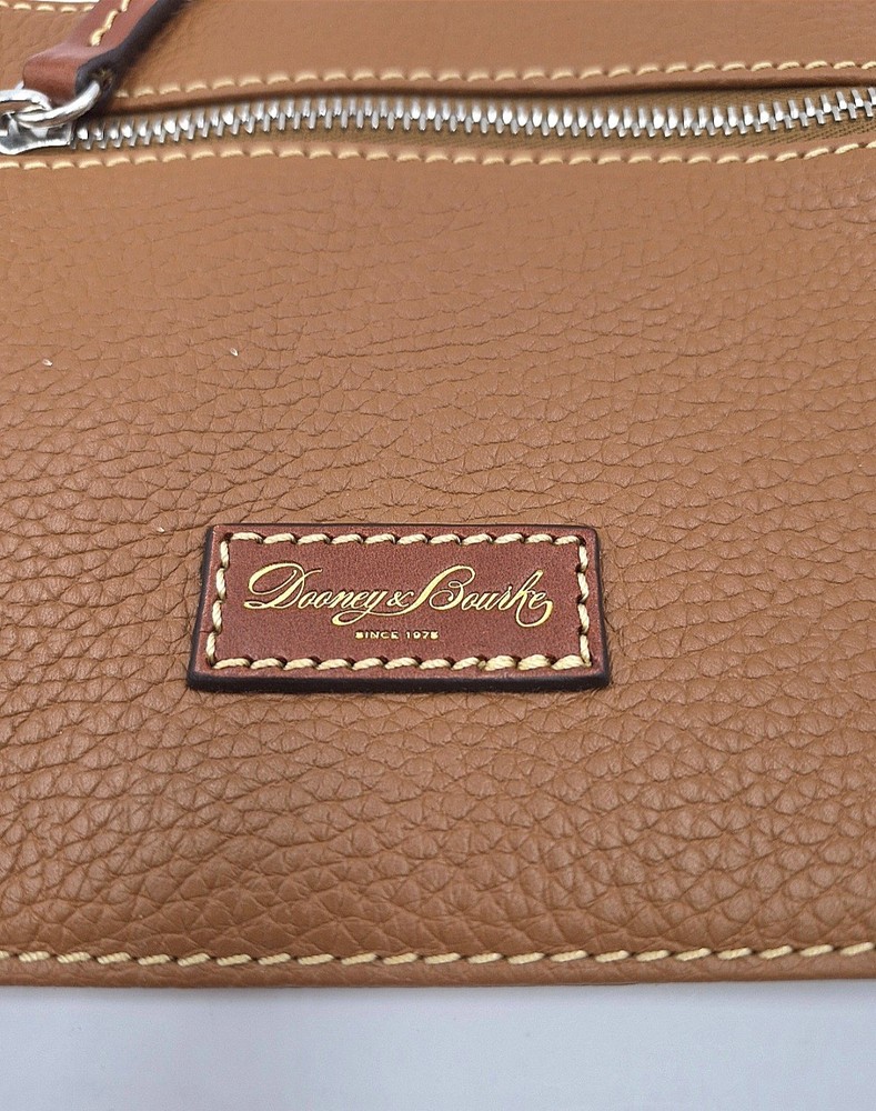 This is a Dooney & Bourke Pebble Grain leather wristlet in brown tan color new
