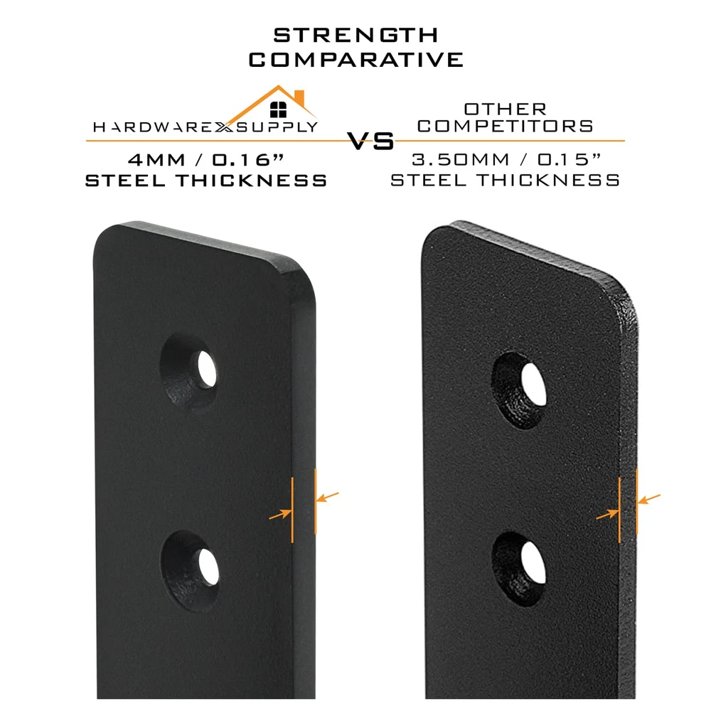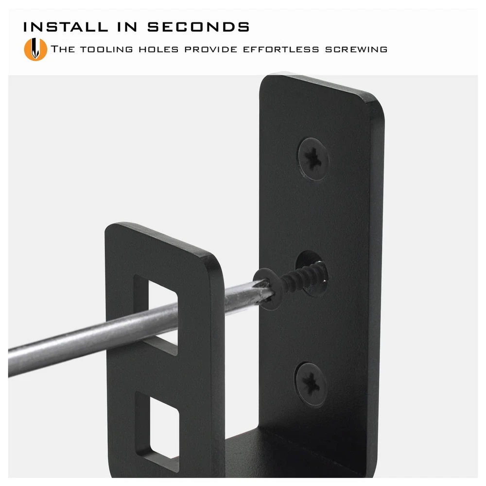 HEAVY DUTY harden steel open bar holder bracket with 4mm thickness SPECIFICATION fit 2x4 standard lumber board to lock the door closed from the inside for extra reinforce security. FINISH black powder coating finish to provide long lasting rust proof for indoor and outdoor application AVAILABLE in variety 2pack or 4 pack brackets EASY TO INSTALL with included 1.625" matching black screws