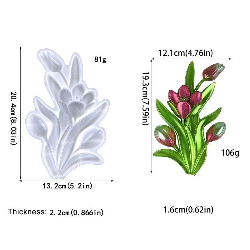 Door Desktop Paperweight Mold DIY Resin Tulip Resin Mold Desktop Epoxy Casting Features: Create Beautiful Tulip Flowers with Ease: This semi-3D tulip silicone mold allows you to create and realistic-tulip flowers Silicone silicone, this mold is durable, flexible, non-stick, and easy to making it for all your crafting needs. Ideal-for DIY-Crafters: Whether you're a beginner or experienced-crafter, this mold is for creating beautiful-tulips for your DIY projects. Versatile Usage: This mold is for creating a wide of including soap, resin, clay, and more. Unleash Your Creativity: With this tulip-mold, Let your imagination run wild and create unique and beautiful that will impress everyone. Specifications: Silicone Size:Approx.20.4x13.2x2.2cm/8.03x5.2x0.8" Color: Clear/Blue Package Includes: 1 Piece Silicone Mold note: Please allow 1-2cm errors due to manual measurement,Please make sure that you do not mind before you order. Due to the difference between different monitors, the picture may not reflect the actual color of the item.
