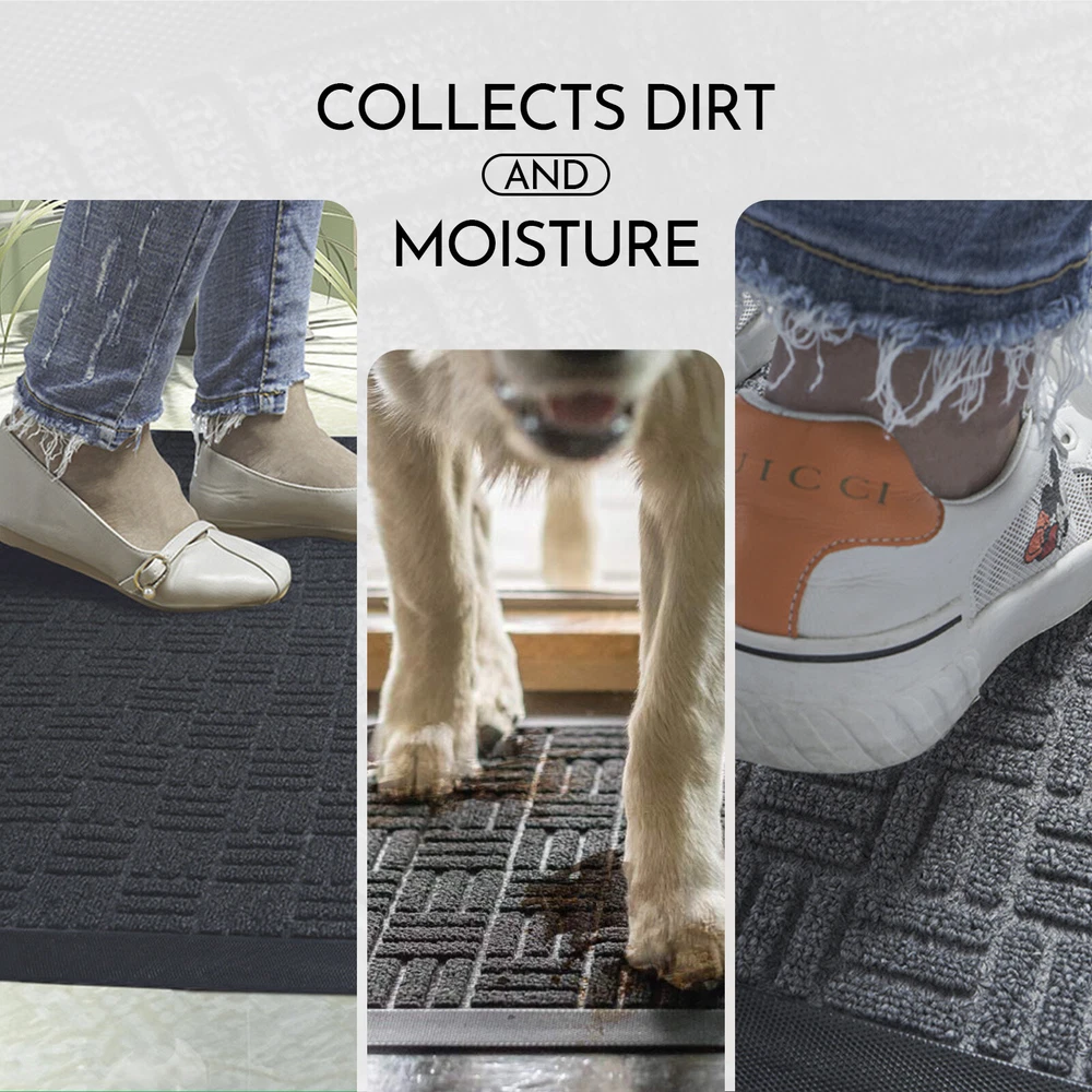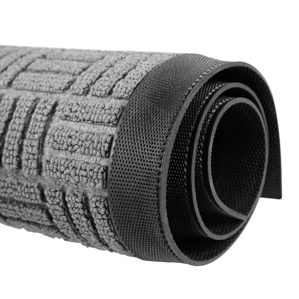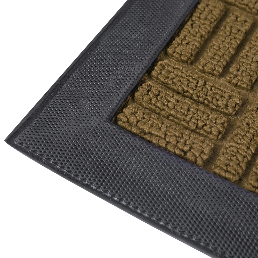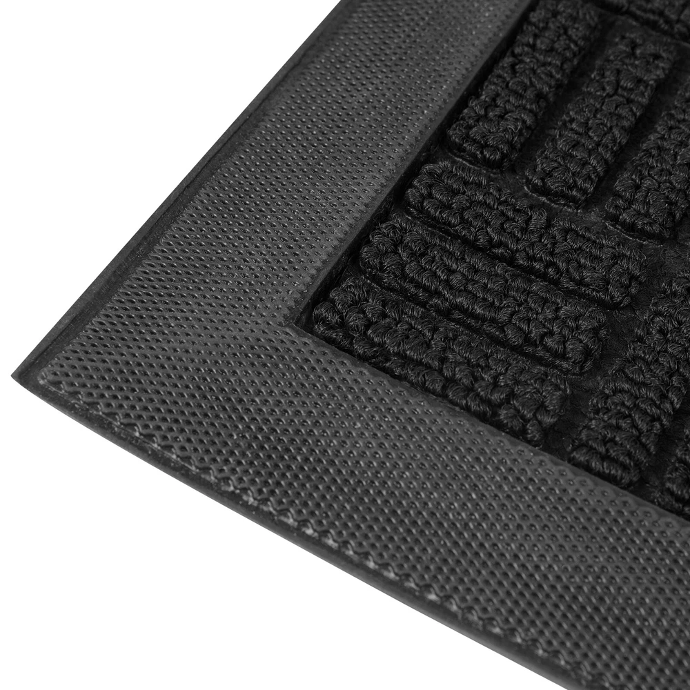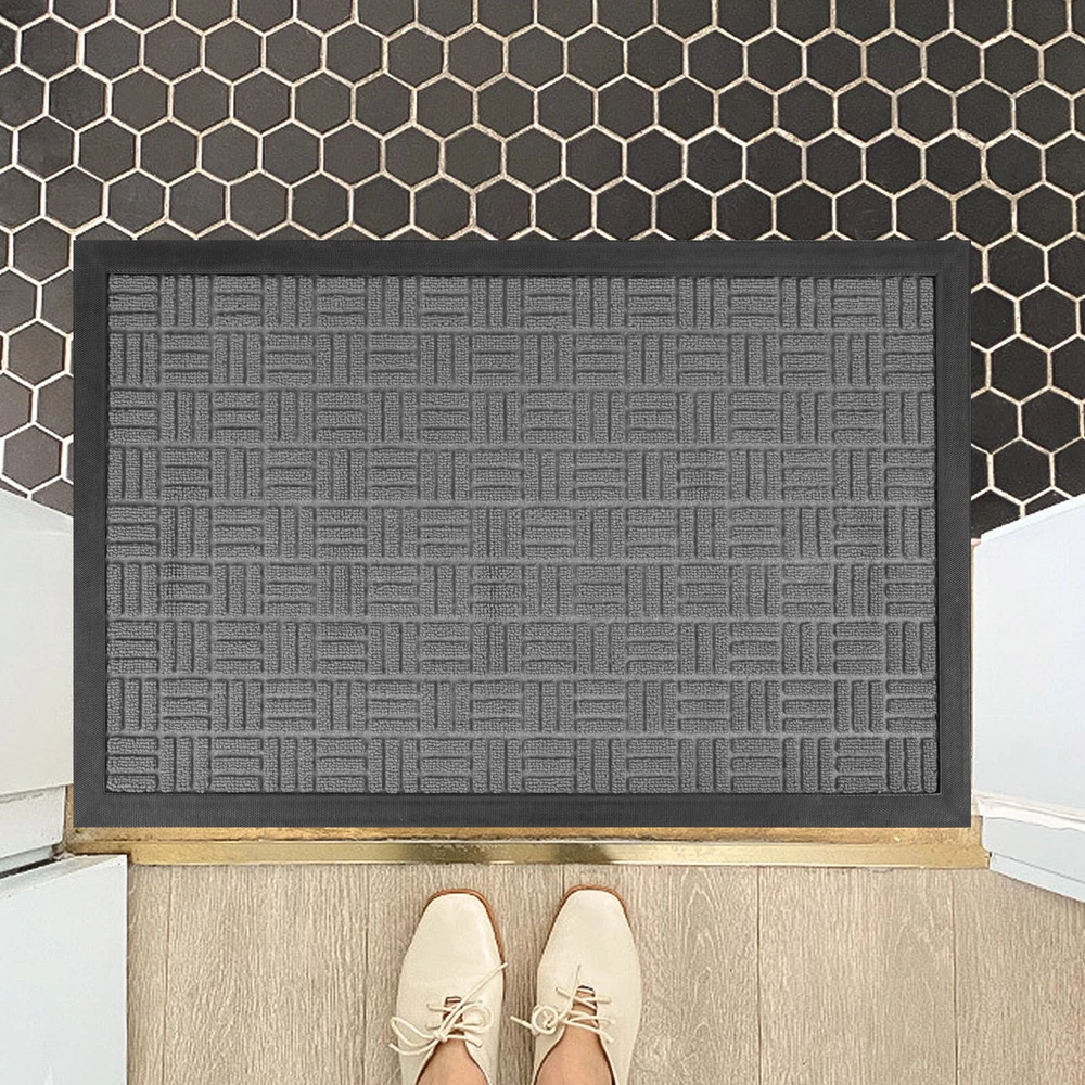 Door Floor Mat Heavy Duty Entryway Mats for Indoor Outdoor Rug + Rubber Backing Feature Upgraded Material: Our door mats are constructed of high-quality polypropylene fiber on the surface and the all-natural rubber on the bottom, eco-friendly materials are safe and odorless, making the mat durable and strong, soft and flexible. Our entryway mat can decorate modern homes. Versatile Protector: Put it in front of the door, the slightly raised polypropylene fabric not only decorates your home with a modern style but helps to scrap off dust, grit, mud, sand,grass or snow and absorb moisture from shoes, preventing everyday dirt things being brought into the house and staining the floor. With heavy duty rubber beveled border helps to form a retention dam to trap moisture, mud or other messy unwanted debris from tracking into your home; Non-Slip Backing: Our door mat has a powerful non-slip backing as there is a rubber bottom that stays on the ground stable and firm, your kids and pets can run and sprint on it safely in and won't slip or scuff floors. You can [lace it in the kitchen, front door, entryway, hall, patio, garage, laundry, bathroom. Caring Instruction: When you need to clean it, just sweep with a broom or shake the dirt off over the garbage is OK. For a deeper clean, wipe with a damp cloth and mild soap, or use a garden hose to rinse the mat outdoors Specification Type Outdoor Mat Material High-quality polypropylene fiber Bottom Material Rubber Color Gray, Black, Wine Red, Brown Pattern Solid Size 18 x 30 inch/24 x 36 inch QTY 1 Pc Thickness 0.2 inch Feature Anti-wrinkle, Stain Resistant, Anti-Slide Room Doorway, Gate, Porch Package Content 1 x Outdoor Mat
