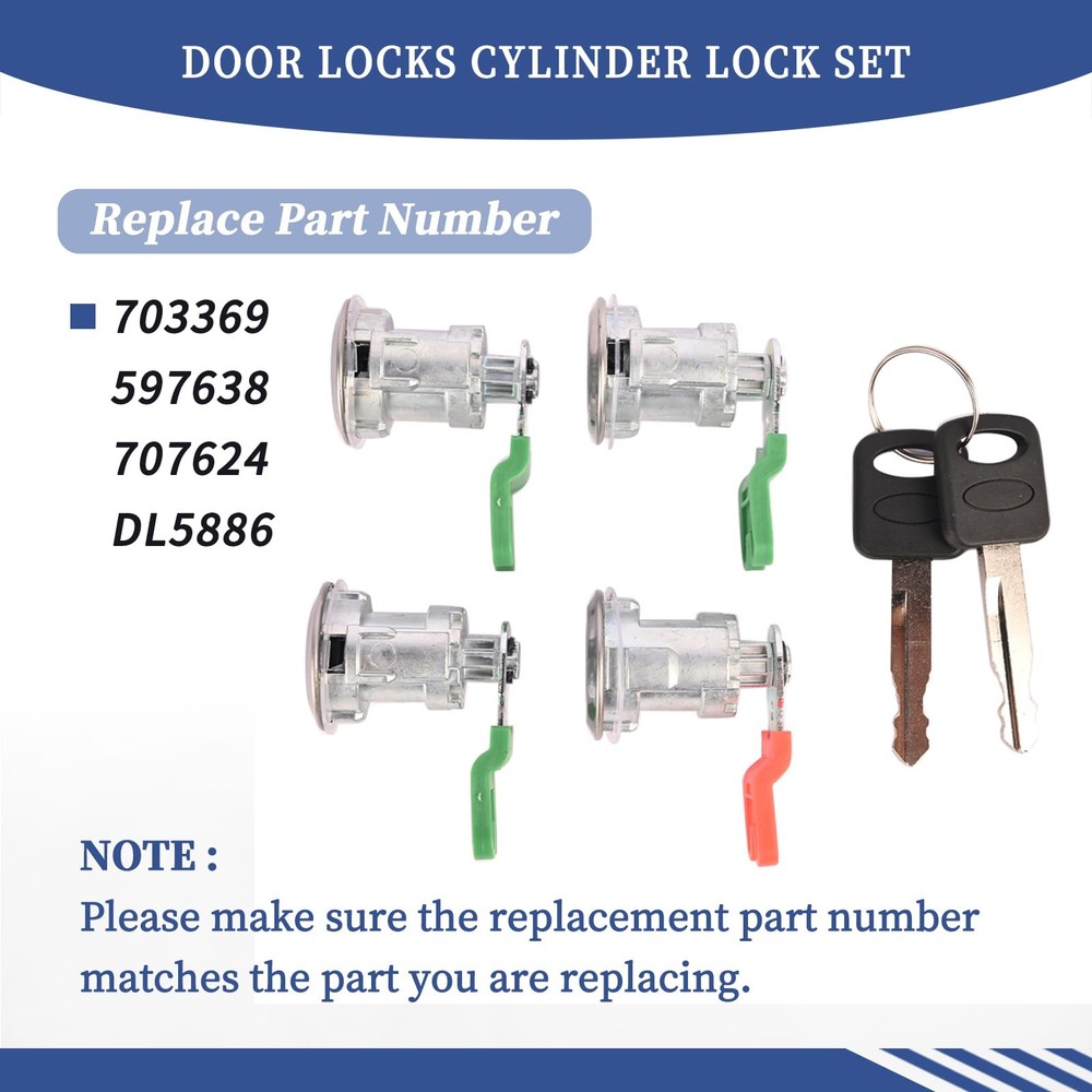 Condition: New : Yes Replace Part Number: 703369, 597638, 707624, DL5886 Compatible Models: Compatible with Ford Econoline Van E150 E250 E350 1997 1998 1999 2000 2001 2002 2003 2004 2005 2006 2007 2008 2009 2010 2011 2012 2013 2014 2015 2016 2017 2018 Features: According to the original factory specifications,perfect match for the original car. Aftermarket product with premium quality. Package: 1* Door Locks Cylinder Lock Set (as picture shows) Replace Part Number: DL5886, 703369, 597638. Wide Compatibility: Compatible with Ford Econoline Van E150 E250 E350 1997 1998 1999 2000 2001 2002 2003 2004 2005 2006 2007 2008 2009 2010 2011 2012 2013 2014 2015 2016 2017 2018 High Quality: Standardized manufacturing and quality material to ensure excellent performance and excellent service life. Hassle-free Installation: Our product boasts stable characteristics and high reliability, making installation a breeze. Satisfied service: If any questions, please feel free to . We will your experience.