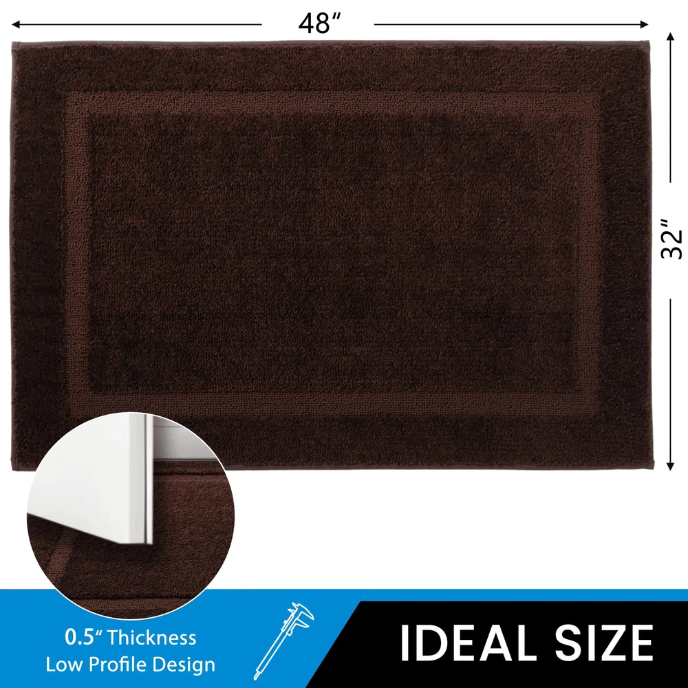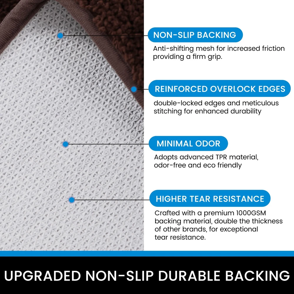 [LOW PROFILE & ABSORBENT TOP]: With its low-profile design measuring just 0.5" thick, this entryway rug won't get jammed or curled when doors are opened or closed. Additionally, this door mat is made of high-density super absorbent material that can effectively capture water and dirt from boots or muddy paws, making it an ideal solution for maintaining a clean and tidy floor [NON-SLIP & DURABLE BACK]: Thanks to its strong anti-shift backing, this doormat will remain firmly in place. Unlike other mats with cheap PVC bottoms, this bottom is made of premium odourless TPR material which is highly durable and resistant to oxidation. To ensure its non-slip backing is effective, it's essential to clean the floor of any dirt, oils, or water before use [EASY TO CLEAN]: For daily cleaning, shake it off or vacuum it. For a deeper clean, you can wash it in the machine using cold water and dry it on low. Its fade-resistant fabric and reinforced overlook edges make it incredibly durable, ensuring that your entry rug looks like new, even after repeated washing [MULTI-PURPOSE USE]: Measuring 32 inches (W) x 48 inches (L), this mat is ideal for use at the front door, back door, kitchen, bathroom, indoor entrance, laundry, mudroom, hallway, and garage, making it a versatile choice for door mats, welcome mats, front door rugs, area rugs, dog rugs, and dog mat for muddy paws [PLEASE NOTE]: This door mats is folded for packaging, it may have a slight crease in the middle. Don't worry, the crease will gradually disappear with daily use. You can also refer to the graphic tutorial below to better eliminate creases
