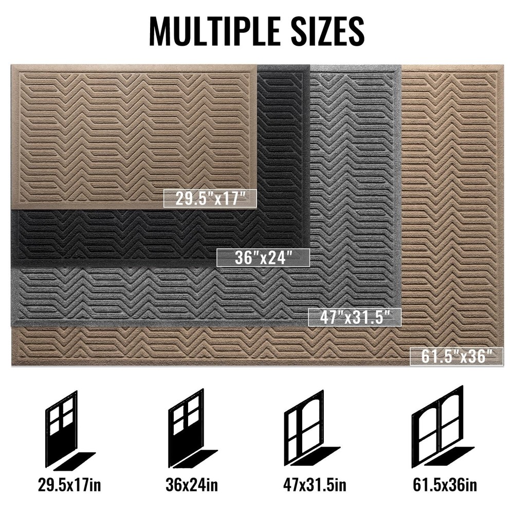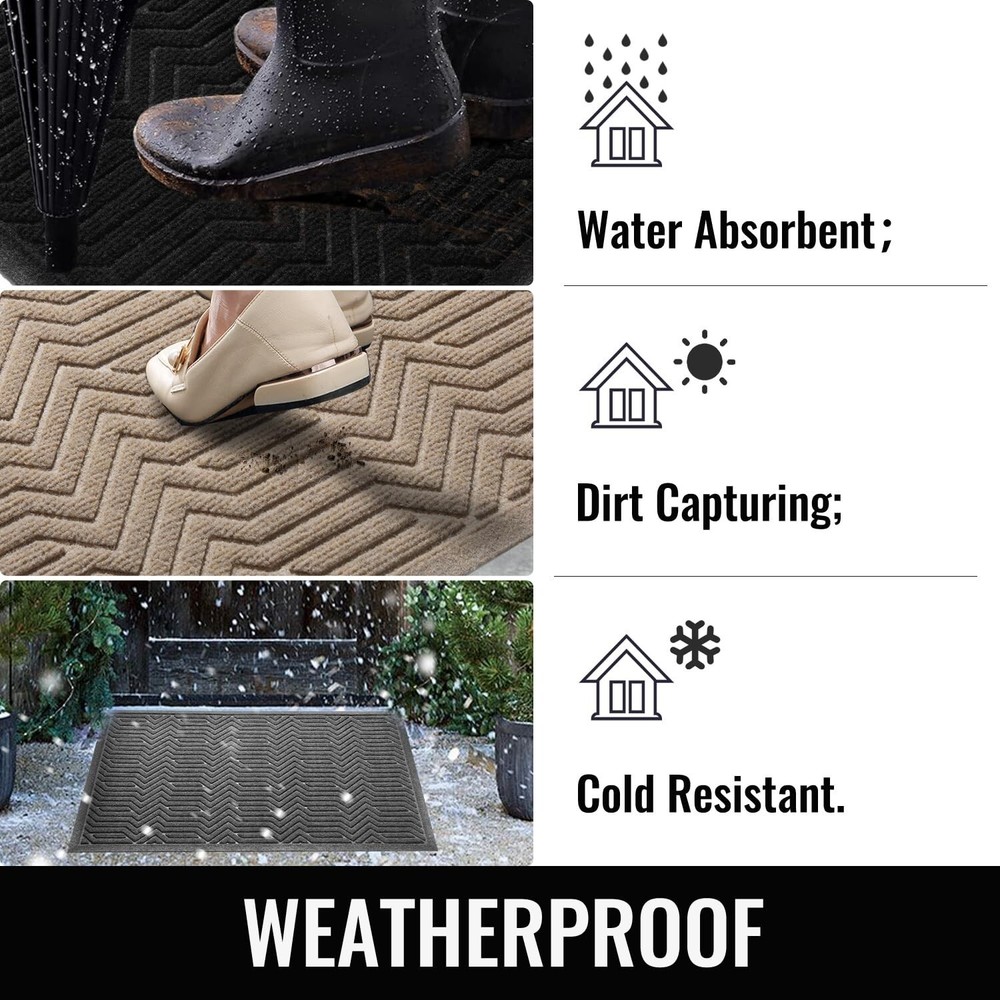 Door Mat Indoor Entrance, Sturdy Front Door Mat Outdoor, Absorbent Muddy Dirt Resist Welcome Door Mats, Non-Slip Backing Entry Mat Doormat for Entryway, Fade and Stain Resistant, 36x24 Inch, Grey Product Details Size: 36" x 24" Color: Light Grey Brand: BEHERO MPN: Does not apply UPC: Does not apply EAN: Does not apply Brand: BEHERO Size: 36" x 24" Material: Polyester, Polypropylene, Rubber Weave Type: Hooked Item Weight: 3.6 Pounds Brand: BEHERO Size: 36" x 24" Material: Polyester, Polypropylene, Rubber Weave Type: Hooked Item Weight: 3.6 Pounds Pile Height: 0.3 Construction Type: Machine Made Back Material Type: Rubber Color: Grey Indoor/Outdoor Usage: Indoor Theme: Christmas, Winter, RV, Welcome, Season, Thanksgiving, Fun Is Stain Resistant: Yes Product Care Instructions: Machine Wash, Hand Wash Only Pattern: Geometric, Gingham, Checkered Shape: Rectangular Special Feature: Absorbent, Fade Resistant, Quick Dry, Stain Resistant, Non Slip Room Type: Entryway, Laundry Room, Kitchen, Home Office, Hallway Product Dimensions: 36"L x 24"W Rug Form Type: Doormat Style: Art Deco, Country, Vintage, Shabby Chic, Modern Occasion: Christmas, New Year, Housewarming, Halloween, Thanksgiving Item Thickness: 0.3 Inches Warranty Type: Lifetime Water Resistance Level: Water Resistant Is Autographed: No Seasons: spring, summer, autumn, winter Recommended Uses For Product: Entryway, Patio, Porch, Kitchen, Garage, Deck, Pet Entry, High Traffic Areas Item Weight: 3.6 pounds Date First Available: September 4, 2024 Doorstep Cleaner: BEHERO door mat is made of absorbent polypropylene fabric, with deep groove design lead to capture moisture and dirt from shoes effectively. Keep your doorway clean and tidy and protect your home from dust starting with this entrance mat Practicality and Safety First: BEHERO front door mat make up from natural rubber, which offers higher tensile strength, better tear resistance, better grip and less odour than other synthetic rubber or PVC backing. Kids and pets running around safely Stain and Fade Resistant: BEHERO indoor and outdoor mat surface is made of high density polyester fibre, absorbs water well and dry quickly at the same time. As outdoor mat features heat resistant, water resistant, color will not fade remain as new Easy to Clean: BEHERO welcome mat can be vacuumed, swept and shaken off the dirt. For a deep clean, rinse or machine wash it and hang the matt in a ventilated place. Save time on cleaning to ensure that doormat stays clean and tidy to welcome guests Long Time Using: You may get tired of looking at this door mat indoor entrance because it last too long time. Entryway rug make up from high quality material with moisture-proof , wear-resistant, cold-resistant suitable for all seasons and weather