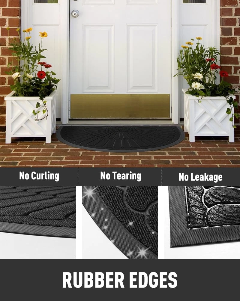 Door Mat Outdoor Indoor Entrance Doormat-Semicircular Durable Rubber Non Slip Fr