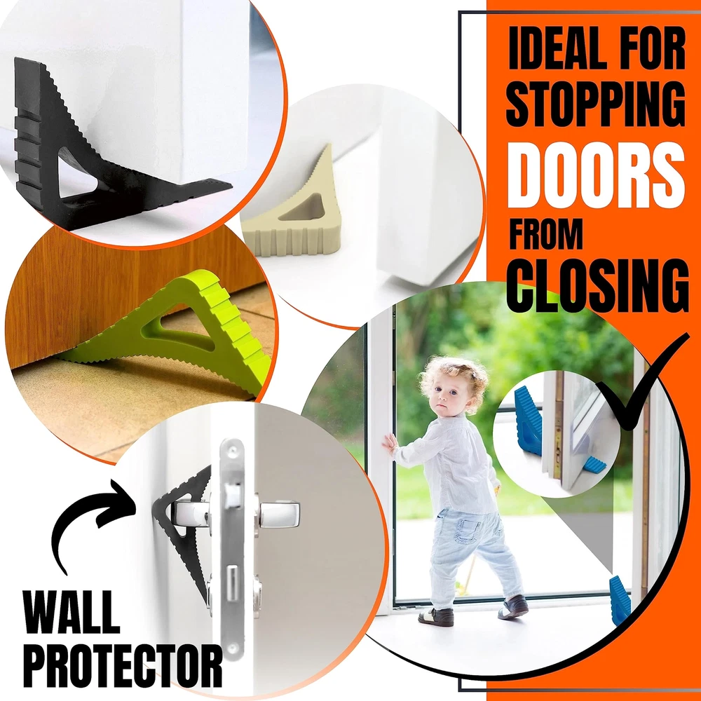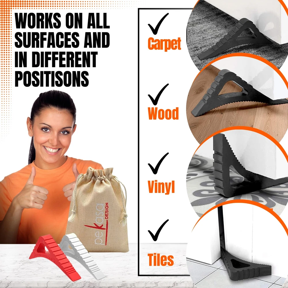 Pekasa Door Stopper is perfect for any home. It is made of durable flexible rubber that will stop and hold your door or window from closing. It can be easily shaped to fit in all spaces where it can be used. No tools, glue or drilling are necessary for its installation and use. It can be placed and removed easily. It's suitable for any type of floor surface like wood, carpet, concrete, marble, vinyl and it can be used indoors or outdoors. This fun and cute door stopper has an Award Winning triangular shape, that is very flexible, and has all 3 sides indented with small notches in order to allow it to fit in most door heights, most door hinges and window frames which make it a very versatile product to have in your home or office. This unique door jam has many uses and is like nothing you have had in your house before. You can use it on doors to keep them from closing, door hinges to prevent them from shutting, window frames to keep them open, and also on your door handles to keep them from hitting and damaging walls and furniture. This door stop is made from lead free rubber that is very strong which allows it to convert and twist into a lot of different positions so that it can be long-lasting and resistant through time and use. It is also washable. Actual item color may vary from the color of the picture. This is available to purchase in 1, 2 or 3 unit packs. Doorstops wedge available in multiple colors - you can purchase large door stop in 12 colors: Black, Smokey Gray, White, Dark Blue, Canary Yellow, Coral Red, Gold Sand, Hot Pink, Lime Green, Papaya Orange, Purple Punch and Sky Blue. DOOR STOP THAT WORKS - This high end decorative door stopper is made from durable, flexible and strong rubber that will last a long time. The size of this doorstop will hold doors with clearances up to 1.5 in. May not work on all doors and surfaces MULTISURFACE DOOR JAM - These premium quality rubber door stopper wedge are perfect for most floors like tile concrete wood or carpet. Large door stop for heavy doors and tall door stopper. Door stops for carpet. May not work on all floor types. DECORATIVE DOOR STOPPERS FOR BOTTOM OF DOOR - This is not your typical traditional door holder, this is a premium modern colorful cute door stopper that will catch your eye and will look great in your home or office, or as a great gift idea MULTI-USE DOOR STOPPERS - This door stops for floor is great for any door, as you can use it in different ways due to its unique and different design. Can be used on doors, as a window wedge, hinges, sliding doors and handles to protect walls DOOR STOPPERS FLOOR PERFECT SIZE – Its triangular shape allows it to hold doors and windows due to its very unique size 4.72 x 0.78 x 3.15 inches. Free of Lead, BPA and Phthalates and it is odorless. 100% Customer Satisfaction if not satisfied SET OF 1, 2 OR 3 DOOR JAMMER - This large door stopper wedge is a great rubber door stopper and works as a heavy duty door stop or door wedge stopper. You can buy in packs of 1, 2 or 3 heavy door stopper (door wedge yellow) DOORSTOPS WEDGE AVAILABLE IN MULTIPLE COLORS - You can purchase large door stop in 12 colors: Black, Smokey Gray, White, Dark Blue, Canary Yellow, Coral Red, Hot Pink, Lime Green, Papaya Orange, Purple Punch, Sky Blue and Vanilla Creme WORKS AS A WINDOW WEDGE STOPPER - our large door stopper works perfectly as a window wedge window stop. This rubber window stopper will work great to keep your windows opened.