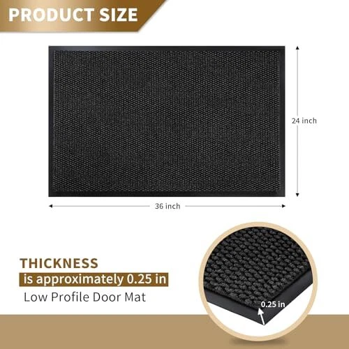 Return Policy Fast Delivery Trusted seller Doormat Outdoor Indoor Entrance 36 x 24, All-Season All-Weather Front Door Mat, 100% Waterproof Welcome Matt for Floor Garage Outside Entry, Stain and Fade Resistant,Black Product Description 【NON-SLIP RUBBER BACKING】: inside door mat outside entrance, 0.20 inch slim design, can slide under most doorways without snagging rolls.The indoor mat is made of high quality natural rubber backing with higher tensile strength and tear resistance, less odor than synthetic rubber, preventing you from slipping in and out and keeping you safe.At the same time, the rubber backing prevents water and mud from seeping into the floor, effectively protecting your interior floor. 【Easy to Clean】: exterior door mat, Just use a vacuum cleaner, or sweep with a broom, or tap the backing and shake the doormat. For more in-depth cleaning, use a washing machine or garden hose to rinse the floor mat, then hang it in a ventilated place to air dry it or use a dryer. 【Stain & Fade Resistant】:The surface of this outside matt front door all weather is made of high-quality polyester, unique Hot-melt Planting Production Process, which is designed to be sturdy, strong and flexible. The doormat in outside can withstand a variety of weather and seasonal changes, whether it is sunny, rainy or snowy. 【Capture Dirt and Moisture】: shoe mat adopts classic square grid deep groove design, forming a detention dam extending in all directions, helping to capture dirt, dust, gravel, mud, sand, grass or other messy debris and prevent them from entering Indoor; The surface of floor mat beautifully woven polyester fabric absorbs moisture, and the borderless design allows the doormat to keep water from pooling on rainy or snowy days, keeping your home dry and clean. 【Wide Use】: versatile dirt trapper door mat for house are stylish and practical, suitable for indoor use to keep the floors of homes, living spaces, lobbies and offices clean, or outdoor use in front doors, sidewalks, terraces, garages, barns, driveways and many others busy areas; Heavy and sturdy materials, soft and flexible;Simple and stylish design complements any decoration. Shipping Returns Payment Shipping Shipping is FREE to all addresses other than APO/PO boxes in the lower 48 states. All our stock ships from US-based warehouses. Shipped via USPS or UPS (depending on location and package weight) Unless stated otherwise, all orders will ship within 24-72 hours of your payment being processed. Check our feedback to see the great reviews of FAST shipping we offer. Returns Seller does not accept returns Payment We currently accept payment via eBay managed payments only. Once payment is cleared, we will dispatch your shipment within 1-3 business days. Please refer to the "Shipping" tab for more information regarding shipping speed to your destination.
