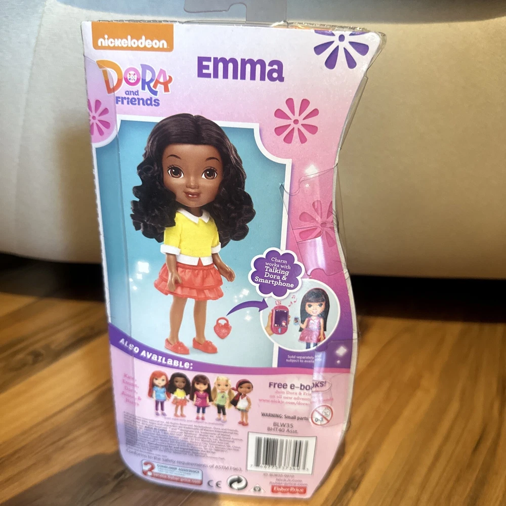 This 8-inch Dora the Explorer Friends Emma doll is a great addition to any child's toy collection. The doll features articulated joints, brown straight hair, and brown eyes. It is an original, licensed reproduction from the Dora & Friends franchise and is perfect for all occasions. The doll comes in its original packaging, unopened and ready for display. It is made of vinyl material and has a medium-light complexion. The doll is part of the Dora The Explorer product line and was manufactured in China in 2014. This fashion doll is perfect for children aged 3 and above and is sure to be a hit with any young Dora fan.