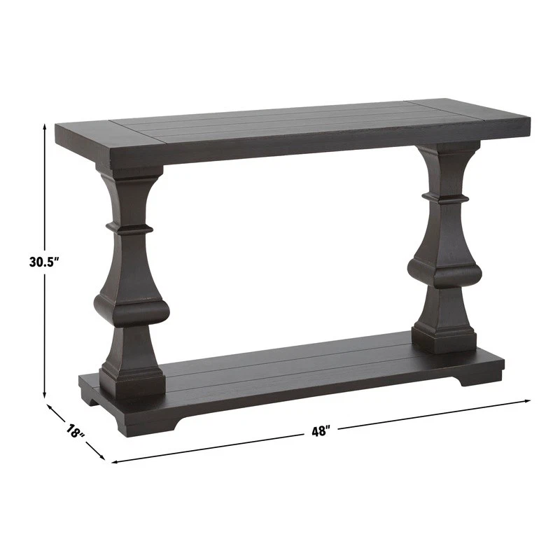 You may also like Indoor Round End Table Black Metal Cross Legs Movable Tray Top Accent Table New 46.47 USD 48.92 USD Free shipping 5% off Oval Coffee Table W/ Shelf Indoor Storage MDF Furniture Classic Design New 121.4 USD 127.79 USD Free shipping 5% off Wood End Table W/ Drawer Open Shelf Living Room Bedroom Indoor Storage New 75.73 USD 79.72 USD Free shipping 5% off Stylish Modern Coffee Table W/ Storage Shelf Engineered Wood Living Room New 89.59 USD 94.3 USD Free shipping 5% off Graystone Coffee Table Storage Shelf Industrial Style Indoor Furniture New 100.17 USD 105.44 USD Free shipping 5% off Rustic Rectangle Console Table W/ Arched Supports Space-Saving Indoor Furniture 271.71 USD 286.01 USD Free shipping 5% off Town Square Coffee Table W/ Shelf MDF Open Storage Indoor Furniture Black Wood 154.68 USD 162.82 USD Free shipping 5% off Nesting End Tables Set of 2 Solid Wood Legs Indoor Furniture Easy Assembly New 107.34 USD 112.99 USD Free shipping 5% off Modern Coffee Table Storage Cabinet W/ Open Shelf Dark Walnut Furniture New 79.12 USD 83.28 USD Free shipping 5% off Cayla Storage Coffee Table Wooden Accent Table W/ Drawers Indoor Vintage Design 208.17 USD 219.13 USD Free shipping 5% off Geometric Coffee Table Tempered Glass Top Brass Metal Frame Indoor Accent Table 127.53 USD 134.24 USD Free shipping 5% off Two-Tone Contemporary Wood End Table W/ Storage Shelf Home Living Room New 66.12 USD 69.6 USD Free shipping 5% off Architectural design and simplicity become one in the Dory Occasional Table Collection from . The Dory Sofa Table features a plank effect top accented by the unique pedestal base for a look that can't be ignored. Sturdily constructed of hardwood solids and mindi veneers in a subtle ebony finish, the table also has a bottom base shelf for extra storage or display. Your purchase includes one sofa table. Plank effect top Architectural design elements Ebony finish Bottom shelf for additional storage or display Product Dimensions: 30" H x 18" W x 48" D You may also like Infant Changing Table Dresser 2 Drawer Storage Shelves Baby Nursery Furniture US 226.08 USD 237.98 USD Free shipping 5% off 15-Piece Non Stick Cookware Set Colorful Heat Resistant Lacquer Dishwasher Safe 126.62 USD 133.28 USD Free shipping 5% off 13 Gal Trash Bags 1000 Count Kitchen Dustbins Liners Black Plastic Leak-Proof US 74.35 USD 78.26 USD Free shipping 5% off 16oz Clear Plastic Disposable Cups 1000ct Iced Coffee Smoothies Crack Resistant 95.69 USD 100.73 USD Free shipping 5% off Tufted Bench Cushion 36in x 14in Waterproof Stain Resistant Indoor Outdoor New 117.74 USD 123.94 USD Free shipping 5% off Hydroponic 39W T5HO Indoor Plant Grow Light Fixture W/ NanoTech Reflector New 78.02 USD 82.13 USD Free shipping 5% off Powerful Corded Drill 55Amp Variable Speed Compact Onboard Bit Storage New 72.13 USD 75.93 USD Free shipping 5% off Slim 3-Tier Mesh Rolling Utility Cart Bathroom Kitchen Office Storage Trolley US 54.37 USD 57.23 USD Free shipping 5% off 30Qt Portable Cooler Plastic Outdoor Activities Camping Easy Clean W/ Cup Holder 49.95 USD 52.58 USD Free shipping 5% off Lockable Jewelry Storage Chest Wood Organizer W/ Removable Tray & Travel Case US 56.5 USD 59.47 USD Free shipping 5% off Biometric Handgun Safe W/ LCD Temperature Display USB Power 3 Access Modes Black 117.78 USD 123.98 USD Free shipping 5% off Industrial Metal Bar Cart Rolling Drink Storage Wooden Shelves Wine Glass Rack 51.74 USD 54.46 USD Free shipping 5% off