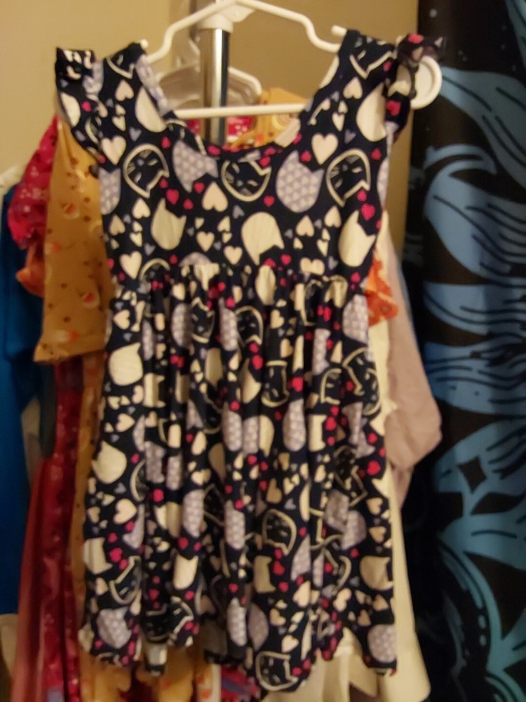 Dot Dot Smile 2T Cat Print Toddler Dress with Ruffle Cap Sleeves and Knee Length