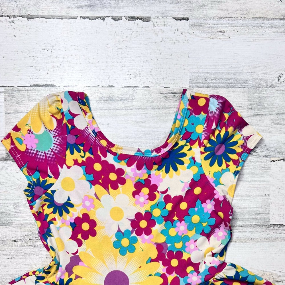 This Dot Dot Smile twirl dress is sure to make any girl shine. It's perfect for any occasion and features a vibrant floral print that will make your little one stand out in the crowd. Soft and comfortable, with a cap sleeve. Size 8-10 96% Spun Polyester, 4% Spandex Very good used condition. No flaws. Smoke free home. Pet friendly.