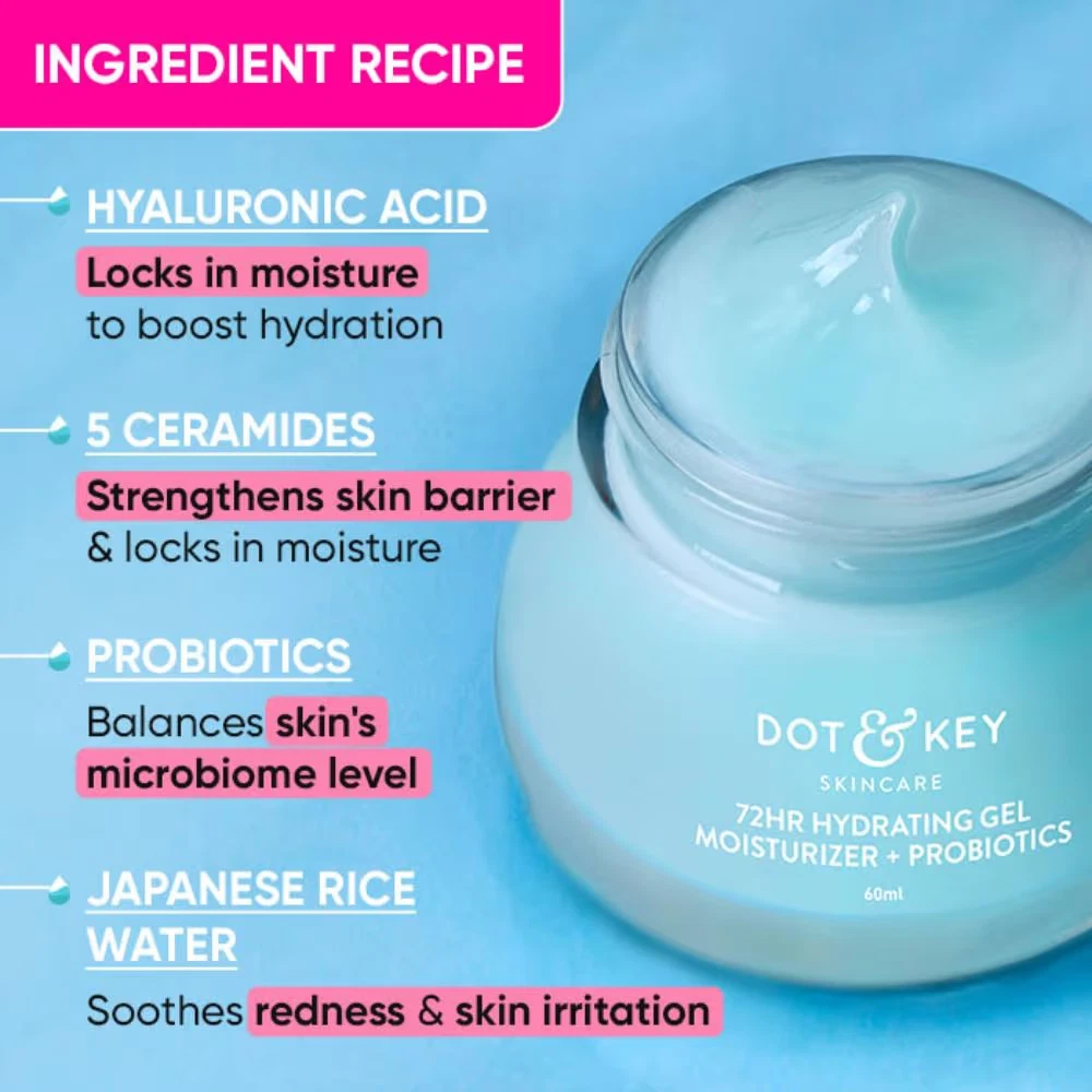 Dot & Key 72HR Hydrating Gel Face Moisturizer With Hyaluronic & Probiotics For Normal To Oily Skin (60ml) Product Description