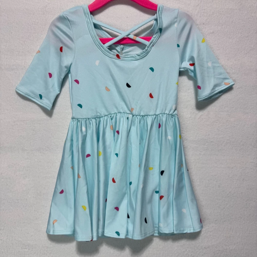 Dotdotsmile Ballerina Dress New with tags cool slinky material v neck 3/4 length sleeves Crossed straps in the back elastic around the waist 417 Condition: New With Tags