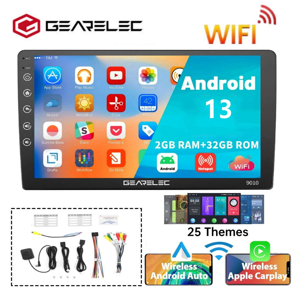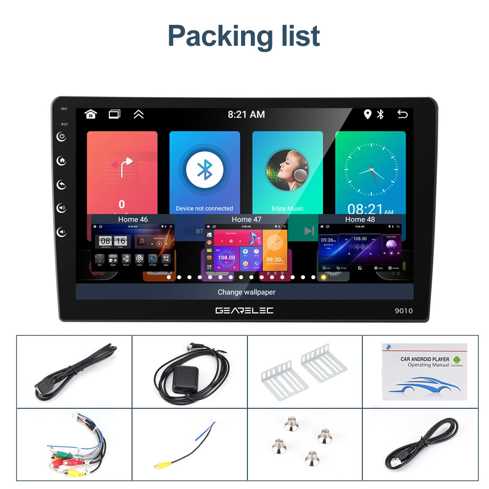 🎁This Car MP5 player has a built-in 10.1-inch high-definition digital screen and has better performance and more powerful functions. And it is also equipped with Bluetooth function, which can be connected to mobile phones, and supports hands-free calling, safer driving, and Bluetooth music playback. Stylish and new design is adopted, and it can perfectly match your car. It is also high-quality and easy to install and use. Feature: -10.1'' TouchScreen Car Stereo: This Car Stereo is equipped with 10.1 inch big screen. High revolution, supports 1080P ultra clear video. arc edge anti-scratch tempered glass screen, durable and not easy to break. -GPS Navigation, WIFI Supports: Car stereo double din with New GPS navigation function, supports offline/online mode, real-time positioning and accurate navigation. Android software installation is available. Free access to the Internet, giving you a wonderful Internet experience. -Bluetooth 4.1: Built-in Bluetooth 4.1 version, supports hands free phone calls and music playing, making driving safer. File transfer can be faster and more stable and music playback quality is improved. -RDS/FM Radio, Steering Wheel Control: FM radio, high-definition broadcast radio, you can choose your favorite stations and listen to news, music and program anytime. RDS: TA, AF, PTY are supported. Steering wheel control is available, which is easy to learn and operate. -HD Reversing Image: When the car is in reverse gear, the car stereo radio can automatically switch the full-screen reversing image, which makes it safe and easy to solve the trouble of reversing! -Compatible with Apple Carplay and Android Auto Function: Double Din Car Stereo supports Apple CarPlay & Android Auto, and easily get phone contacts, emails, notifications, map navigation, music, videos, hands-free phone calls, and etc. Specification: OS: Android 13 Radio frequency: FM 87.5~108.0MHz Radio IC: 6625 Power amplifier IC: CD7388CZ Output power: 60Wx4 Working voltage: 12~14.4V Working temperature: -10~60℃ Bluetooth version: 4.1 (default name: Car-BT) WiFi frequency: 2.4GHz GPS signal: GPS/AGPS/GLONASS/Beidou CPU: A7, 1.3GHz, Quad Core Memory: 2GB RAM + 32GB ROM Screen size: 10.1 inches (IPS screen) Screen resolution: 1024x600 Phone screen mirroring: support (for iPhone/Android phones) Locate and find my car function: not supported Reversing camera input: support Driving video playback warning: support Steering wheel control function: support button learning Video output: support Offline maps: support Dashcam input: support (USB signal input) GPS navigation: support Rear USB port: USB 2.0 (4-pin, for USB flash drive input) Rear USB port: USB 2.0 (6-pin, for dashcam input) Reset button: support RCA ports: 2-channel audio output (left channel + right channel), 1 channel video output, 2-channel audio input (left channel + right channel), 2-channel video input, 1 channel reversing video input Audio format: MP3/WMA/WAV/APE/FLAC/AAC/OGG/RM Video format: MPEG/AVI/RM/FLV/ASF/WMV/MP4/MKV/OGM/TS/DivX/RMVB/VOB Photo format: JPG/BMP/PNG/JPEG/GIF Language: Indonesian/Malay/Czech/Danish/German/English/Spanish/Filipino/French/Croatian/Italian/Latvian/Lithuanian/Hungarian/Dutch/Norwegian Bokmal/Polish/Portuguese/Romanian/Slovak/Finnish/Swedish/Vietnamese/Turkish/Greek/Bulgarian/Russian/Ukrainian/Hebrew/Urdu/Arabic/Persian/Hindi/Bengali/Thai/Khmer/Korean/Simplified Chinese/Traditional Chinese/Japanese Factory setting password: 1234 Note: There may be slight size deviations due to manual measurement, different measuring methods, and tools. The pictures may not reflect the actual color of the item because of different photographing lights, angles, and monitors. What's included: 1 X Car Radio 1 X 16-Pin Power Cable 1 X RCA Cable 1 X Reversing Video Input Cable 2 X USB Cables 2 X Mounting Brackets 4 X Screws 1 X Manual
