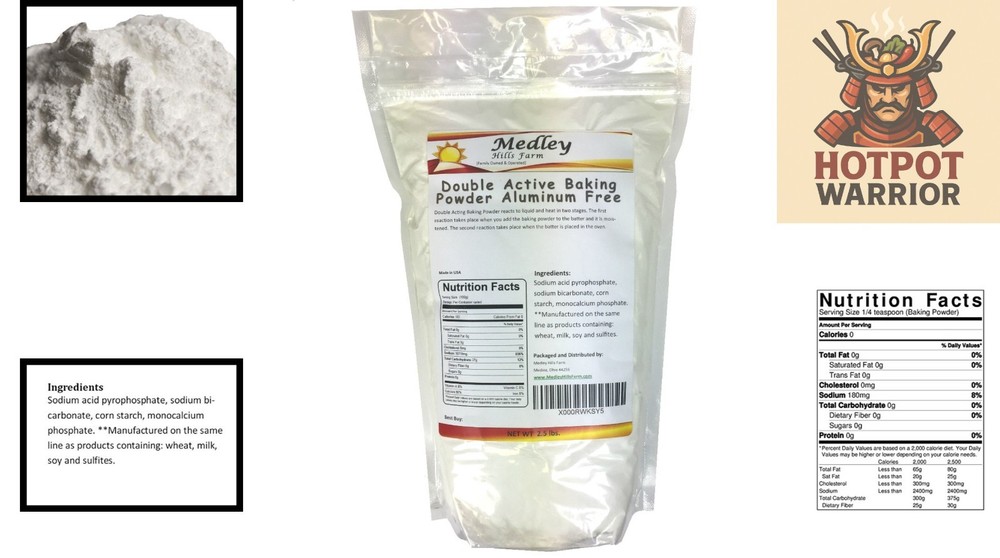 Double Acting Baking Powder - 2.5 lbs, Aluminum-Free for Best Results ‹ › ‹ › ‹ › ‹ › ‹ › ‹ › ‹ › Double Acting Baking Powder Experience the difference with our high-quality, aluminum-free baking powder, packaged in a generous 2.5 lbs resealable bag for freshness and convenience. Features: Double-acting formulation that ensures perfect results 1st reaction when moistened: activates immediately upon mixing 2nd reaction when heated: provides an extra rise while baking Completely free from aluminum ingredients Secure sealing for prolonged freshness, so every use is a delight Benefits: Achieve light, fluffy baked goods that rise beautifully Enhance the taste and texture of your favorite recipes Ideal for cakes, cookies, breads, and more Convenient resealable packaging for easy storage and usage Why Choose Our Baking Powder? Unleash your inner baker with our Double Acting Baking Powder, specially formulated to provide extraordinary results for all your baking creations. Say goodbye to aluminum, and say hello to pure, unadulterated quality. Enjoy the dual activation process that guarantees a magnificent rise in your batters, leading to delightful pastries, cakes, and breads. Transform your baking game – ensure that your kitchen is stocked with the best by choosing our Double Acting Baking Powder. Taste the difference in quality and experience baking at its finest. Shipping Free & Fast Shipping - We offer free shipping to most of the USA with a normal delivery time of 3-7 days. However, due to the current situation, additional delivery time (up to 3 weeks) may be required for some items. Alternative Carriers - We may use alternative carriers (e.g. USPS, FedEx, UPS, etc.) to ensure your package arrives safely and on time. Due to the use of multiple carriers, we are unable to provide a tracking number automatically. Handling Time - Orders are processed and shipped within 1-2 business days of receiving cleared payment. Shipping Restrictions - Shipping to Alaska, Hawaii, Puerto Rico, Guam, and other US territories may incur shipping charges or delivery restrictions. Please contact us before ordering, or your order can be refunded/cancelled. State Restrictions - There may be restrictions based on your state of purchase. For example, certain items may not be shipped to California due to state regulations. Contact for Tracking Updates - If you require tracking updates or have any concerns about the delivery of your order, please feel free to contact us, and we will be happy to assist you. Return 30-Day Hassle-Free Returns - We want you to be completely satisfied with your purchase. If you are not, you can return the item within 30 days of receiving it for a full refund or exchange. Easy Return Process - To start a return, simply contact us and we will provide you with a prepaid return shipping label and detailed instructions. Restocking Fee - There are no restocking fees for returns. However, the buyer is responsible for return shipping costs if the return is not due to a seller's error. Refund Processing Time - Refunds will be processed within 5 business days of receiving the returned item in its condition. Payment We accept all major credit cards, PayPal, and Apple Pay for your convenience. Your payment information is secure and encrypted to ensure a safe and seamless transaction. Please complete your payment within 3 days of purchase to avoid any delays in shipping. Feedback Your feedback is extremely important to us. We strive to provide the best products and customer service possible. If you are satisfied with your purchase, please take a moment to leave us a positive review. If you have any concerns or issues with your order, please contact us before leaving negative feedback. We are committed to resolving any problems and ensuring your satisfaction. Contact Us If you have any questions or concerns, please feel free to out to our customer support team. You can contact us through the eBay messaging system. We are available Monday to Friday, 9:00 am to 5:00 pm EST, and we will do our best to respond to your inquiry within 24 hours. Buy it now and enjoy a pleasant shopping experience! Date of Creation: 2023 Color: White /Reproduction: Baking Powder Type of Advertising: Sticker