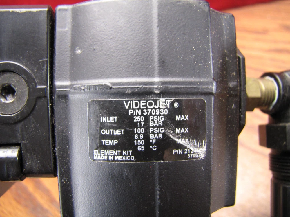 This Double Air Filtration Element Kit 212785 & Regulator Videojet 370930 is designed to ensure the cleanliness of your air pressure system. The kit includes a philtre element that removes dust, dirt, and other particles from the air, ensuring that your equipment operates smoothly and efficiently. The regulator is compatible with a maximum pressure of 250 psi, making it suitable for a wide range of applications. The brand of the kit is Videojet, a trusted name in the industry. It is ideal for use in air pressure regulators, compressors, and other equipment that requires clean and efficient operation.