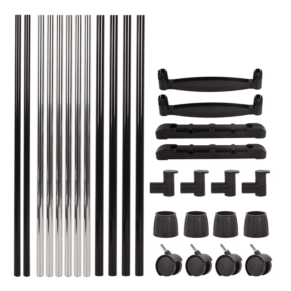 Double Bar Rolling Garment Rack on Lockable Wheels for Clothing Hanging Details Product Description Clothes storage made easy. Perfect for expanding your closet or as a backup open closet for extra hanging storage. Great for laundry rooms, bedrooms, or even displaying in stores or markets. Package List: 1x Drying rack 【Material】The clothes hanger with wheels is made of anti-rust iron pipe, with a maximum load capacity of 110 lbs, which can easily hold all your clothes. 【Flexibility】360° swivel wheels make it easier to move this rolling clothes hanger from indoors to outdoors, and the wheels have brakes to lock it in place when stability is needed. The hanger is very secure. 【Large Storage Space】The high and low hanging rods can accommodate clothes of different lengths, making daily organization look more organized. Side rails provide additional storage space for hangers, scarves and towels. The bottom pole can also hold multiple pairs of shoes, as well as bulky items like blankets. 【Easy to Assemble】: The hanger is easy to install, follow the instructions to complete the steps, and comes with installation tools. 【Stylish Design】Unique hanging rack design, perfect for entryways, living rooms, bedrooms, balconies, home offices, etc. FAST SHIPPING Regular Shipping service is free, covers all states in US, normally takes 1-7 business days. For Express Shipping service, please check with US Post first, some of the locations may NOT be covered by their express shipping network. In this case, express service may also take 1-7 business days just like the regular. We do NOT take any responsibility for the delay if your location is out of their express network. Or, please consult us before checking out. We DO ship to GPO/PO BOX, Parcel Locker/Collection address. EASY RETURNS We understand that sometimes you need to make a return or an exchange. All we ask is you send it back in the same condition it was received - new and un-used. If the product you receive is not the one you ordered, please take photos of any visible part numbers of visual reference and contact us directly; photos must be CLEAR and have the part numbers VISIBLE. Logistical claims must be filed within 14 days of received the product; exchanges in these cases will be handled promptly and at no cost to the customer. In order to process a return or exchange, please call us or send us a message through eBay and we will be happy to assist you immediately. However,any return that is NOT defective or NOT received in error, is the responsibility of the customer. We DO NOT cover any shipping costs and/or additional fees associated with the transaction. The buyer is also subject to a 15% restocking fee in most cases; unless previusly agreed upon by us. CONTACT US Business Hours: 9:00am-5:00pm Monday-Friday (AEST/AEDT) Email: Via eBay Messages Our friendly staffs are available during these hours. Please feel free to call us, or send us a message via eBay. We aim for complete customer satisfaction and repeat business; we will be more than happy to help you feel 100% comfortable with your purchase. WARRANTY On Dec 5, 2024 at 20:21:52 PST, seller added the following information: