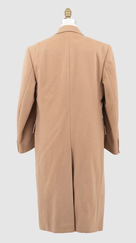 Double Breasted Camel Trench Coat, Size 36 (Small) Men's. Total length 45", sleeve length 24", chest 22 1/2", label inside "Made in Poland, Dry Clean Only, size label in inside pocket S-36. Material: No content label indicated so not too sure what is the exact material but it does feel like wool.