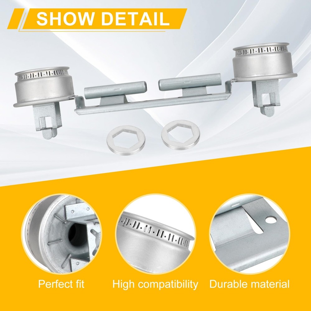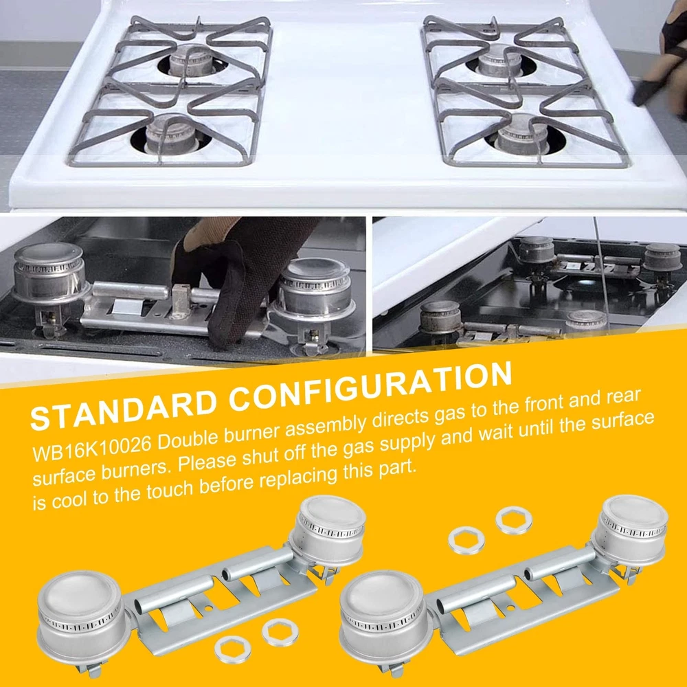 Double Burner Kit WB16K10026 WB29K17 Gas Range Double Burner Assembly Replace 【Replace Number】WB16K10026 Double Burner Kit is made of high quality materials and has been rigorously tested to ensure long-lasting and effective working performance. Replace part numbers: 65932, 868697, PS232404, AH232404, AP2633210, WB16K10003, WB16K10026, WB29K0001, WB29K0017, WB29K1, WB29K17. 【Value Package】Double burner assembly WB16K10026 package includes: 2 PC WB16K10026 range double burner assembly, flame spreader heads and mounting bracket. Fixes the following symptoms: gas igniter glows but will not light, will not start, element will not heat. 【Applicable Models】WB16K10026 Double top burner kit fits for General Electric, Kenmore, Hotpoint and other range brands. Kenmore: 362.7121890, 362.7131892, 362.7162890, 362.7171890, 362.7171892, 362.7271591, 362.7272590, 362.7333391, 3626101190, 3626101191, 3626101192, 3626101194, 3626101195, 3626101196, etc. GE: AGBS300EP1BB, AGBS300EP1WW, AGBS300EP2BB, AGBS300EP2WW, AGBS300EP3BB, AGBS300EP3WW, AGBS300EP4BB, AGBS300EP4WW, AGBS300PJ1WW, XL44, etc. Hotpoint: RGA620EF1WH, RGA624EF1WH, RGB508BEW1AD, RGB508ES1, RGB508PEA1AD, RGB518PCD2WH, RGB524ER2, RGB524PET1WH, etc. 【Easy To Install】WB16K10026 Gas Stove Burner assembly directs gas to the front and rear surface burners. Shut off the gas supply and wait until the surface is cool to the touch before replacing this part. Please wear work gloves to protect your hands. 【Support Help】 Please verify that the model is compatible before ordering to ensure you get the correct double burner assembly. If you have any questions or unsatisfactory with the product, please contact us and we will give you a satisfactory reply within 12 hours. Packing List: 2 x WB16K10026 Double Burner Assembly (Flame spreader heads, mounting bracket included Fixes the following symptoms: Gas igniter glows but will not light, will not start, element will not heat. High Quality Gas range WB16K10026 Double burner kit is made of high quality materials that can perfectly match the top double surface burner kit you need. Assembly Each of double burner WB16K10026 kit has 2 flamer heads and 2 lighter tubes which are firmly attached to a mounting bracket, strong and durable. Compatible Compatible with General Electric Hotpoint Kenmore and other brands. Please check model compatibility before ordering to get the correct double burner replacement kit.) Shipping Payment Return Customer Service Feedback Shipping We will ship the items within 24 hours on working days after your cleared payment. 1. Upon request, most of orders placed before 1pm EST can be shipped same day during weekdays from our US warehouse. 2. We only ship to the eBay confirmed address, Tracking number is uploaded to eBay orders. 3. Delivery time depends on destination and other factors, it may takes up to 3-8 working days. If you don't receive the item in 15 days, please contact us, we'll investigate and solve the delivery problem. 4. Import duties, taxes, and charges are not included in the item price or shipping cost. These charges are the buyer's responsibility. Please check with your country's customs office to determine what these additional costs will be prior to bidding or buying. Payment 1.We only accept PayPal. PayPal is the only online payment method we accept. 2.Payment must be made within 48hrs of the auction end time. 3.Non-Paying bidders will be reported. Return We provide 30 day return policy for products sold. If, for any reason, you are not satisfied with your purchases, full refund of the purchase (excluding the shipping expenses) can be applicable under the following circumstances: All accessories must be unused; ALL accessory packages must be unopened. All items must be intact and undamaged (except for defects in manufacturing). Items must be in good conditions with all original accessories, manuals, and packing materials. Any missing parts or damaged items will result in rejection on the return. In case of any defectives found, only defects in manufacturing are accepted as the reason of return. No refund is given if defects are caused by misuse of buyers. Our customer service officers will gladly contact you for further arrangement upon your request. All shipping cost thus generated is paid by the buyer. Item returned must be received within 7 days after the receipt of the items. No refund and replacement is issued after this period. Payment will be refunded as original currency only. We will not take responsibility for any loss due to exchange rate difference in the refund process. Refunds will NOT include ANY shipping and handling fees. Any additional expenses (such as eBay listing fees) will also be deducted from the refund. In the case of return, please be sure to include ALL the original contents (including gift, packages and manuals). Any missing contents may result in rejection of the refund. Please also make sure that the return package is securely packed, and apply waterproof packing instruments wherever necessary. Customer Service Working Time: Monday-Friday: 9:00-18:00 GMT+8 Saturday: 10:00-12:00 GMT+8 Customer satisfaction is very important to us and our feedback rating reflects this satisfaction We try our best to reply to your emails as soon as possible, however, due to high volume of daily incoming emails and time zone difference, we may not be able to reply your emails immediately. Please give us the opportunity to resolve any problem. We understand the concerns and frustrations you might have, and will try our best to resolve the issues. We focus on providing the best customer service. If you have any questions or concerns, Welcome to contact us. We will respond ASAP. Feedback If you have any enquiries, please do not hesitate to contact us through eBay contact seller message or email us with your eBay ID & item number. We appreciate your positive feedback and ALL 5 stars DSR score if you are satisfy with the transaction. Our system w