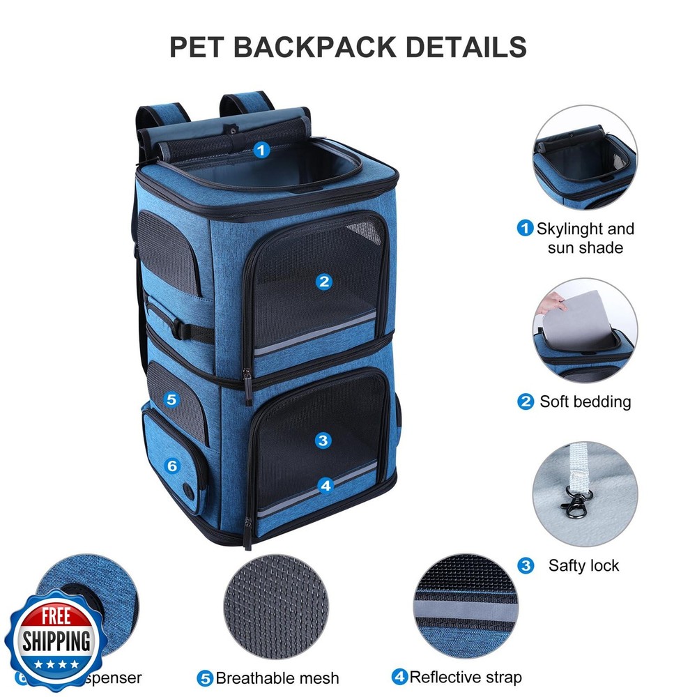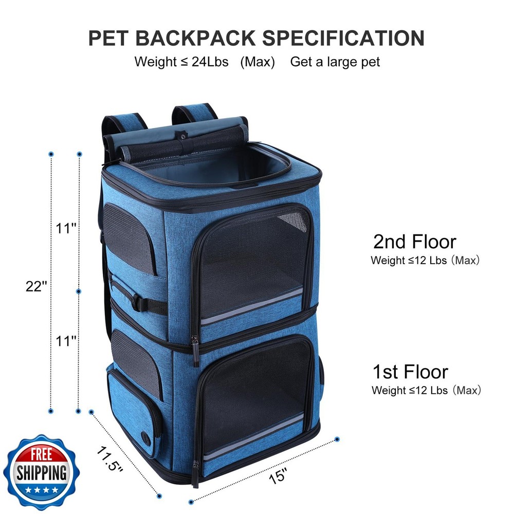 Double Cat Carrier for 2 Cats,Dog Backpack Carrier for Medium Dogs,Double Compartment Pet Carrier Backpack for Dual Pets,for Outdoor Traveling/Stroll and Picnic (Blue) Features ✅【DUAL CAT BACKPACK CARRIER DIMENSION】 The Grey Colour of 2 in 1 Double Compartment Cat Backpack Carrier Perfect for 2 Pet up to 12 Pounds Each Pet( Single Compartment Pet Backpack Dimension 15" L x 11.5" W x 11"H ),or Single Medium/Large Pet Up to 24 Pounds( 2 in 1 Cat Backpack Expand Dimension 15" L x 11.5" W x 22"H ) ✅【STRONG QUALITY】 : The Discreet Dual Portable Cat Carrier Backpack for Two Cats Made with 600D High Quality Standard Oxford Material,Easy to Clean,Lightweight and Tidy,The Pet Carrier Backpack With Strong Structure And Enough Activity Space for Puppies / Cat / Dogs / Chihuahua ✅【HUMANIZED DESIGN】 :The Double Compartment Dog Backpack Carrier With 7 Well Breatable Mesh Window Ventilation Design,2 Pocket Storage,Perfect for Airflow and Nice Vision,Comfortable Floor Lining Mattress,Great for Rest And Relaxation. ✅【SAFTY AND COMFORTABLE】 : The Pet Carrier Backpack With Two Prominently Reflective Stripe Design on The Straps,Safty for Your Travel While in the Evening ✅【LARGE SPACE】:Suitable for 2 Cats or for one Medium Dogs,Specially Double Compartments Cabin for You Have a Relaxing and Enjoyable Outdoor Experience Shipping Free & Fast Shipping: We offer free shipping to most of the USA with a normal delivery time of 3-7 days. However, due to the current situation, additional delivery time (up to 3 weeks) may be required for some items. Alternative Carriers: We may use alternative carriers (e.g., USPS, FedEx, UPS) to ensure your package arrives safely and on time. Due to the use of multiple carriers, we are unable to provide a tracking number automatically. Handling Time: Orders are processed and shipped within 1-2 business days of receiving cleared payment. Shipping Restrictions: Shipping to Alaska, Hawaii, Puerto Rico, Guam, and other US territories may incur shipping charges or delivery restrictions. Please contact us before ordering, or your order can be refunded/cancelled. State Restrictions: Certain items may not be shipped to California due to state regulations. Contact for Tracking Updates: If you require tracking updates or have any concerns about the delivery of your order, please feel free to contact us, and we will be happy to assist you. Return Policy 30-Day Hassle-Free Returns: If you are not completely satisfied with your purchase, you can return the item for free within 30 days of receiving it for a full refund or exchange. Easy Return Process: Contact us, and we will provide you with a prepaid return shipping label and detailed instructions. No Restocking Fee: There are no restocking fees for returns. However, the buyer is responsible for return shipping costs if the return is not due to a seller"s error. Refund Processing: Refunds will be processed within 1 business day of receiving the returned item in its original condition. Feedback Your feedback is extremely important to us. We strive to provide the best products and customer service possible. If you are satisfied with your purchase, please take a moment to leave us a positive review. If you have any concerns or issues with your order, please contact us before leaving negative feedback. We are committed to resolving any problems and ensuring your satisfaction. Contact Us If you have any questions or concerns, please feel free to reach out to our customer support team. You can contact us through the eBay messaging system. We are available Monday to Friday, 9:00 am to 5:00 pm EST, and we will do our best to respond to your inquiry within 24 hours. Thank you for supporting our small family business!