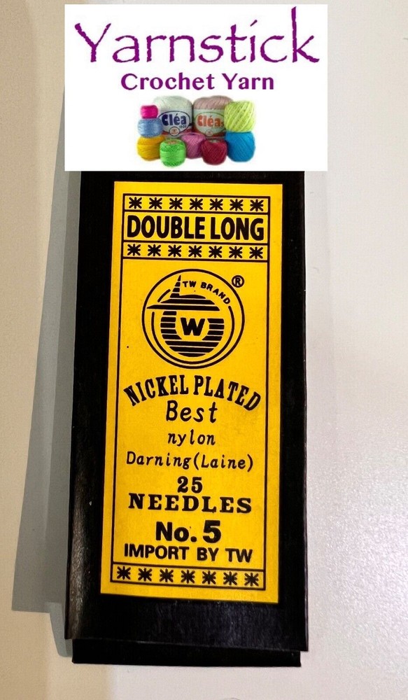 Double Darner Needles Sharp Size 5 Nickel Plated - 50 Needles Per Order This product data sheet is originally written in English. 50 x Long Darner Needles (so called Double Darner) #5 (64mm long) You will receive two packs of 25 needles each These needles are fine, sharp and they will be supplied in their original packaging If you are not entirely happy with your purchase, please contact me first before leaving feedback as I am sure we can resolve the issue. Thank you for looking. Further information regarding my products can be found in my store- Yarnstick under the heading About. 50 x Long Darner Needles (so called Double Darner) #5 (64mm long) You will receive two packs of 25 needles each These needles are fine, sharp and they will be supplied in their original packaging If you are not entirely happy with your purchase, please contact me first before leaving feedback as I am sure we can resolve the issue. Thank you for looking. Further information regarding my products can be found in my store- Yarnstick under the heading About. Eye Shape Medium-Long Brand TW Type Darning Needle Size 5 MPN Does Not Apply Country/Region of Manufacture Japan