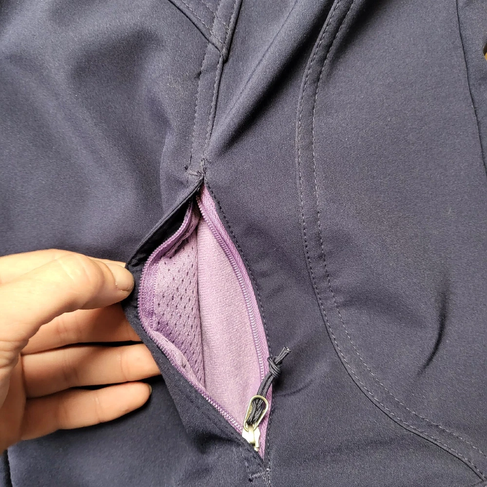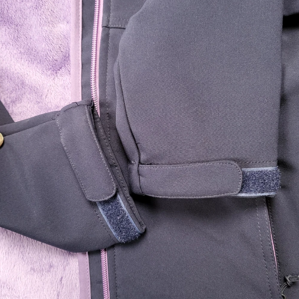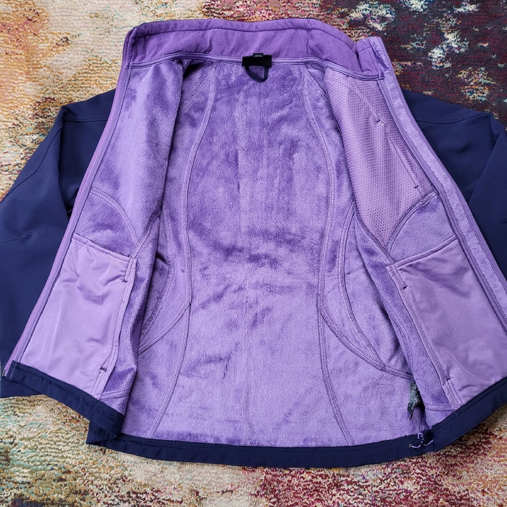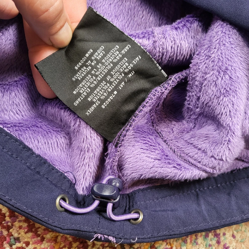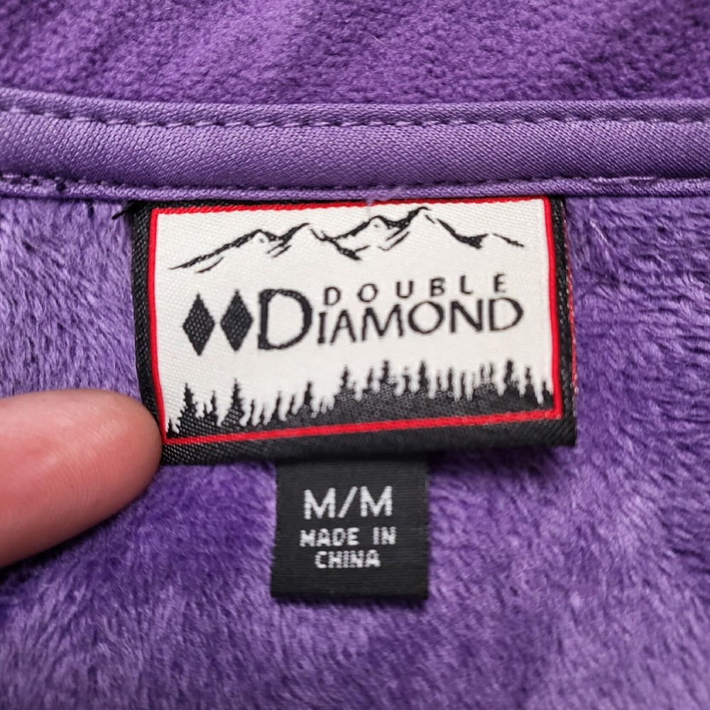 Purple Gorpcore Winter Jacket DOUBLE DIAMOND Hard shell Jacket with Fleece Lining, throughout sleeves - size Medium 📐Measurements lying flat - width 20" - length 24.5" - color dark royal purple - 2 hand pockets + chest pocket all zipper closure - velcro adjustments on cuffs - hard shell seems rain resistant - bottom hem has bungee cinch cord please ask questions if you have any. please check out my other listings 😊