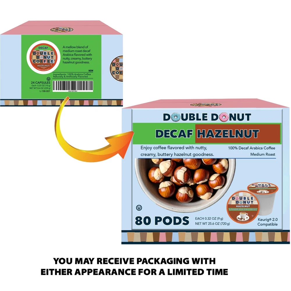 Double Donut Coffee Flavored Decaf Coffee, Decaf Hazelnut Coffee, Decaf Coffee Pods for Keurig K Cups Machines, Medium Roast, 80 Count (Pack of 1) DOUBLE DONUT FLAVORED COFFEE: A mellow blend of medium roast coffee & nutty creamy hazelnut come together to make this flavored decaf coffee. Our hazelnut coffee is available in decaf! Now you can enjoy coffee flavored with hazelnut any time of day QUALITY & VALUE: Save more with our 80 Count decaf flavored coffee value pack! Our hazelnut coffee pods are made with quality ingredients. Revel in the aroma of coffee hazelnut flavor. Enjoy our coffee pods decaf blend without the trip to the café DECAF COFFEE FOR BODY & MIND: Our decaffeinated coffee blends are vegan, Kosher, Pareve, and keto friendly! Enjoy our coffee pods decaffeinated burst of flavor hot or a refreshing iced coffee. Indulge in our hazelnut sugar free coffee without the jitters ECO-FRIENDLY: Double Donut decaf pods are eco friendly! Our single serve coffee decaf blends are packaged in 100% recyclable materials. Enjoy our decaf hazel nut coffee without the jitters and while doing right by mother nature COFFEE PODS FOR KEURIG COFFEE MAKERS: Our kerigue coffee pods are compatible with any coffee machine that brews decaf coffee k cups including the Keurig 2.0 brewer. Kcups is a registered trademark of Kurig. Not affiliated with Keurig & Green Mountain Shipping We offer FREE shipping on all orders! We ship within Three business days of payment, usually sooner. We use a selection of shipping services such as UPS, FedEx, USPS etc. We only ship to the lower 48 states, no APO/FPO addresses or PO Boxes allowed. Local pickups and combined shipping options are not provided at this time. Return You can return a product for up to 30 days from the date you purchased it ONLY if it's in the original condition. The product cannot be used or open. Any product you return must be in the exact same condition you received it and in the original packaging. Please keep the receipt. Feedback Customer satisfaction is very important to us. If you have any problem with your order, please contact us and we will do our best to make you satisfied. Contact Us If you have any queries, please contact us via ebay. We usually respond within 24 hours on weekdays. Please visit our eBay store to check out other items for sale! Thank you for shopping at our store.