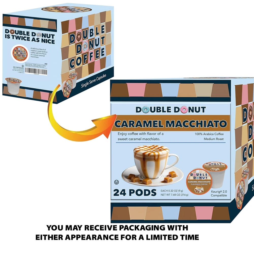 Double Donut Flavored Coffee Pods, Caramel Macchiato Coffee for Keurig K Cups Ma