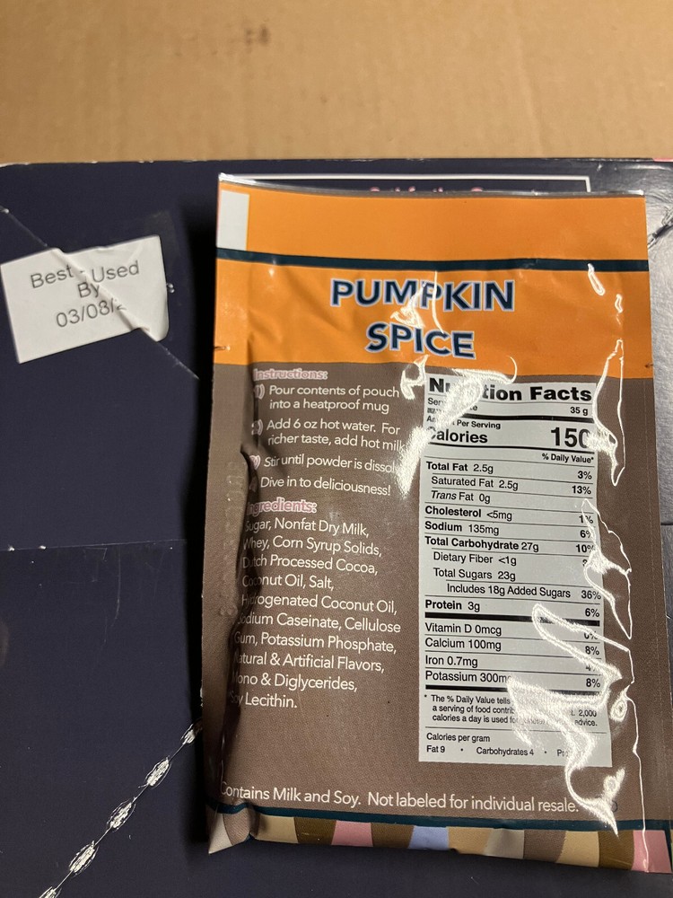 Package Information:PouchUPC:313105682645Country of Origin:USAItem Form:PowderType:Does not applyBrand:Double Donut CoffeeSpecial Ingredients:CocoaProduct:Does not applySize:30 Count (Pack of 1)Package Dimensions:7.95 x 6.46 x 4.29 inches; 1.86 PoundsItem model number:HJM-2435Flavor Name:VeganManufacturer:Double Donut Coffeegtin13:313105682645Item Weight:29.7 Ounces