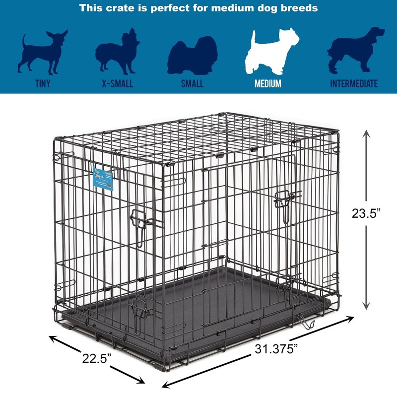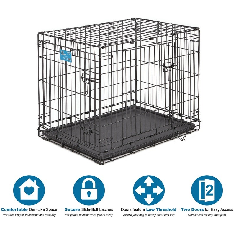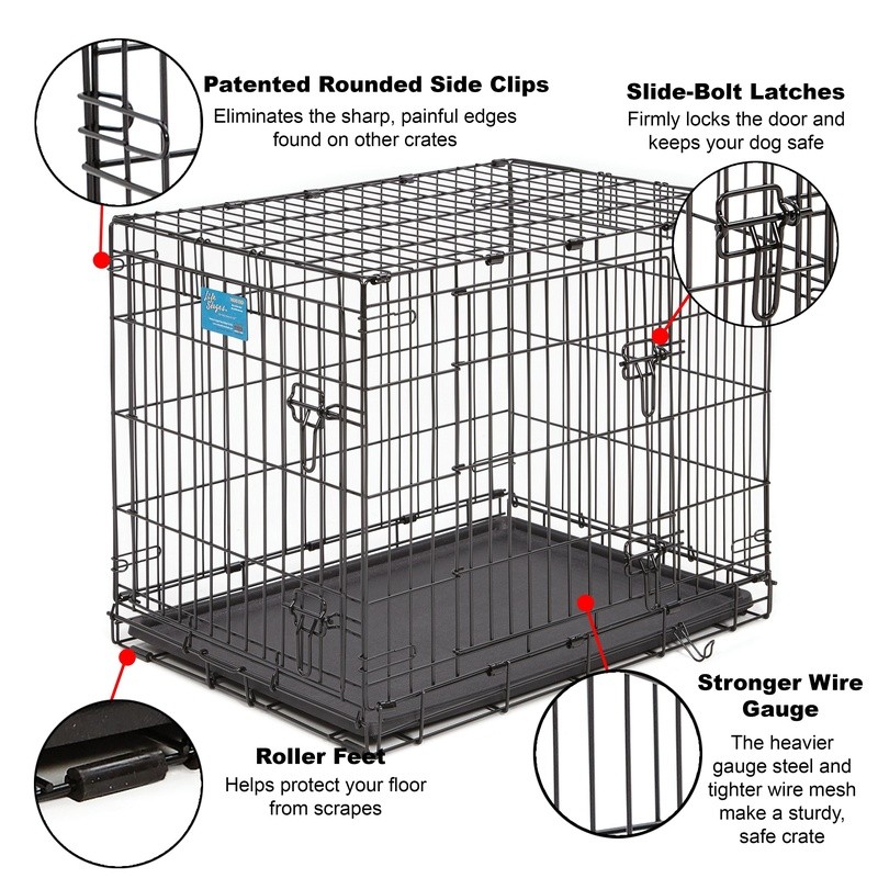 You may also like Compact Double Door Metal Dog Crate Small W/ Divider Panel Portable Foldable New 41.54 USD 43.73 USD Free shipping 5% off Folding Metal Wire Dog Crate W/ Divider Portable Leak-Proof Tray Single Door New 41.05 USD 43.21 USD Free shipping 5% off Folding Metal Dog Crate W/ Divider & Tray Portable Durable Secure Home New 46.17 USD 48.6 USD Free shipping 5% off Foldable Dog Crate Double-Door Metal Wire Kennel Large Pets W/ Tray Divider New 44.89 USD 47.25 USD Free shipping 5% off Foldable Metal Dog Crate Secure Single Door Small Puppy Kennel Easy Clean Travel 35.61 USD 37.48 USD Free shipping 5% off Folding Dog Crate Double Door W/ Divider Leak-Proof Tray Portable Design New 29.67 USD 31.23 USD Free shipping 5% off Folding Soft-Sided Dog Crate Portable Easy Setup Secure Locking Indoor Outdoor 41.54 USD 43.73 USD Free shipping 5% off Foldable Double Door Wire Dog Crate W/ Divider & Removable Tray Small Dogs New 45.1 USD 47.47 USD Free shipping 5% off Medium Folding Dog Crate Double Door Metal Wire Cage W/ Divider Leak-Proof Tray 32.04 USD 33.73 USD Free shipping 5% off Durable Foldable Metal Dog Crate Heavy Duty Secure Single Door Puppy Kennel New 35.61 USD 37.48 USD Free shipping 5% off Plastic Dog Crate Travel Kennel IATA Approved Easy Assembly Small Pet Carrier US 46.27 USD 48.71 USD Free shipping 5% off 24 Inch Dog Crate Divider W/ Slide Out Tray Foldable Waterproof Metal Kennel New 44.55 USD 46.9 USD Free shipping 5% off The LifeStages Double Door folding metal dog crate by MidWest Homes for Pets includes all of the features you will need to provide a convenient, safe and secure pet home for your best friend. This metal dog crate includes a free divider panel allowing you to adjust the size of the dog crate while your dog is still growing, a plastic leak-proof pan for easy clean-up in the event of an accident, a plastic carrying handle for easy portability and rubber “roller” feet on the bottom of the crate to protect your floors inside the home. The LifeStages Double Door metal dog crate configuration (with front and side door access) allows you to situate the dog crate to best fit your floor plan and folds down for convenient storage and portability. We at MidWest Homes for Pets understand that your dog is a part of your family and that’s why we ensure our dog crates are manufactured with the highest quality control standards creating a safe home for your pet that you can feel confident with. Midwest 30" Life Stages Double Door Dog Crate: Double door metal dog crate, 30L x 21W x 24H inches Includes free divider panel, leak-proof plastic pan, carrying handle, rubber feet to protect floors and a 1 year Manufacturer's Warrranty. We manufacture the iCrate and the Life Stages Dog Crate. The main difference is the Life Stages is made of heavier gauge steel and has a tighter wire mesh making it stronger than iCrate. Slide-bolt latch securely locks door in place Dog crate folds flat for convenient storage, travel and portability Strong and sturdy structural metal crate design creates a safe place for your pet while you're away You may also like Heavy Duty Metal Dog Crate Leak Proof Pan Divider Portable Safe Secure Home New 47.04 USD 49.52 USD Free shipping 5% off Portable Plastic Dog Crate X-Small Pet Carrier Pets up to 10 lbs Safe Travel New 29.4 USD 30.95 USD Free shipping 5% off Medium Folding Dog Crate Double Door Metal Wire Cage W/ Divider Leak-Proof Tray 32.04 USD 33.73 USD Free shipping 5% off Pop Up Pet Playpen Indoor Outdoor Kennel Dogs Cats Small Pets Portable New 34.42 USD 36.23 USD Free shipping 5% off Folding Metal Wire Dog Crate W/ Divider Portable Leak-Proof Tray Single Door New 41.05 USD 43.21 USD Free shipping 5% off Folding Dog Crate Double Door W/ Divider Leak-Proof Tray Portable Design New 29.67 USD 31.23 USD Free shipping 5% off Plastic Dog Crate Travel Kennel IATA Approved Easy Assembly Small Pet Carrier US 46.27 USD 48.71 USD Free shipping 5% off Portable Extra Large Pop Up Dog Crate Easy Setup Mesh Windows Travel Safe New 26.51 USD 27.91 USD Free shipping 5% off Leak Proof Replacement Pan 48 Inch Dog Crates Multi-Purpose Tray Easy Clean New 28.55 USD 30.05 USD Free shipping 5% off Folding Metal Dog Crate W/ Divider & Tray Portable Durable Secure Home New 46.17 USD 48.6 USD Free shipping 5% off Folding Dog Crate W/ Divider Heavy-Duty Steel Wire Pet Kennel Training New 31.25 USD 32.9 USD Free shipping 5% off Compact Double Door Metal Dog Crate Small W/ Divider Panel Portable Foldable New 41.54 USD 43.73 USD Free shipping 5% off