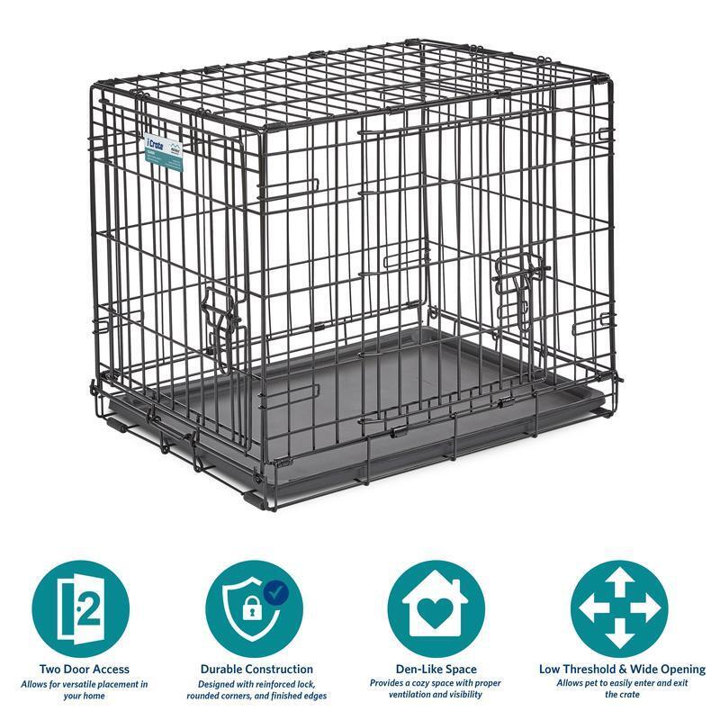 You may also like Lightweight Hardside Spinner Luggage Trolley 28in Durable Travel Bag Black New 76.37 USD Free shipping Canned Sweet Peas 15oz Farm Fresh No Preservatives 6 Pack Tender Flavorful 6cans 8.23 USD 8.66 USD Free shipping 5% off Universal Fillable Patio Umbrella Base Stand Water Sand Weighted Heavy Duty New 38.17 USD Free shipping Multi-Bin Toy Organizer Kids W/ Storage Bins Ideal Playroom Organization New 43.19 USD Free shipping Men's Chain Wallet RFID Protection 2 Snap Closure Heavy Duty Multiple Card Slots 16.79 USD 17.67 USD Free shipping 5% off All Season 16.5x6.5-8 Load C Trailer Tire 6 Ply Bias Construction Highway Use 44.05 USD 46.37 USD Free shipping 5% off Hydro Transmission Belt 754-04043B Riding Mower Replacement Fits RZT 42 50 Decks 27.56 USD 29.01 USD Free shipping 5% off Metal Platform Bed Frame W/ Headboard Footboard Sturdy Underbed Storage Twin XL 68.39 USD Free shipping 12" Semi-Chisel Saw Chain 2 Pack 44 Drive Links Low Kickback Oil System New 16.97 USD 17.86 USD Free shipping 5% off Floor Fan Air Circulator 3 Speed Pivoting Head Quiet Cooling Large Spaces New 46.89 USD 49.36 USD Free shipping 5% off Portable Submersible Water Pump Battery Operated Boats Pools Aquariums Sump Pits 54.66 USD Free shipping LED Night Light Plug-in Auto Dusk to Dawn Sensor Adjustable Brightness 6 Pack US 15.37 USD 16.18 USD Free shipping 5% off The iCrate folding metal dog crate by MidWest Homes for Pets includes all of the features you will need to provide a convenient, safe & secure pet home for your best friend, from puppy to adulthood. This crate includes a divider panel allowing you to adjust the size of the living area as your puppy grows. The plastic leak-proof pan allows easy clean-up in the event of an accident. A strong plastic carrying handle is included for convenient portability, and rubber feet on the bottom of the crate protect the floors inside your home. We recently enhanced the safety and security of the iCrate by adding locking tips on the slide-bolt latches to securely lock the door and patented Paw Block, which prohibits your dog from tampering with the door lock from the inside. MidWest iCrate crates also feature patented rounded side clips that reduce possible sharp points to ensure a safe experience for you and your pet. Every iCrate metal dog crate conveniently folds down flat for travel. The 24" iCrate (model 1524DD) measures 24. 77 L x 17. 92 W x 19. 49 H inches and is suitable for "small" dog breeds. **Please note the term "small” breed is subjective. For the best fit, we advise that you check the measurements of the dog crate and select a size that will be suitable for your dog's ADULT weight and measurements. Your dog should be able to comfortably sit upright, lay down, and easily turn around inside the crate. When in doubt, we suggest you purchase a larger crate option. We at MidWest Homes for Pets understand that your dog is a part of your family; that's why we ensure our dog crates are manufactured with the highest quality control standards to create a safe and secure home for your pet. Assembly and safety instructions are included; please read all safety instructions prior to use. Newly enhanced with added security features to keep your pet safe | Slide-bolt door latch now feature patented Paw Block and locking tips to create a safer, more secure home for your pet iCrate double door dog crate measures 24. 77 L x 17. 92 W x 19. 49 H inches and is suitable for small dog breeds with an adult weight of 12 to 25 pounds. If your dog’s weight or measurements are on the higher side for this crate, we recommend buying the next crate size up Dog crate includes a divider panel, durable & leak-proof plastic pan, protective rubber feet, carrying handle, and customer support team based in Indiana Easy to assemble & portable | Dog crate sets up in seconds with no tools required and conveniently folds flat for travel. Rubber feet protect floors and surfaces Durable & strong, quality construction creates a secure place for your dog to fulfill their natural instinct to den. Proper ventilation, large door openings with low thresholds, and rounded corner clips make iCrate a safer crate experience for your dog PLEASE NOTE: MidWest Homes for Pets manufactures the iCrate & Life Stages dog crates. Assembly and safety instructions are included; please read all safety instructions prior to use. Collapses without tools - makes it a snap to assemble and disassemble Family Owned for Over 100 Years | Customer and product support provided from our headquarters in Indiana! You may also like High Protein Dry Dog Food Chicken Duck Kibble 15lb Natural Vitamins Joint Care 46.16 USD Free shipping Space Saving Vacuum Sealer Starter Kit Vacuum Bags Accessories Food Preservation 93.24 USD Free shipping Washable Nylon Bath Rug Set Non-Slip Backing Machine Made Soft Durable 2 Piece 45.68 USD Free shipping Non Slip Chair Cushion Set of 4 Indoor Use Comfort W/ Slip-resistant Backing 45.14 USD Free shipping Simple Coffee Table Space Saving Stylish Functional Living Room Furniture New 40.74 USD Free shipping 12/2 NM-B Indoor Electrical Wire 25ft Copper Tear Resistant Eco-Friendly Wire US 44.42 USD Free shipping 36in Galvanized Steel Hardware Cloth 10ft Cut Mesh Fencing Garden Protection New 41.58 USD 43.77 USD Free shipping 5% off 7 Function Handheld Shower Head Water Saving Modern Spray System Bathroom New 55.9 USD 58.84 USD Free shipping 5% off Indoor Area Rug Abstract Design Stain Resistant Durable Polypropylene 5x7 New 45.28 USD Free shipping Boozy Brunch Entertaining Set W/ 6 Highball Glasses & Pitcher Cocktails New 39.99 USD Free shipping Cocoon Molded Bed Pillow Hypoallergenic Removable Cover OEKO TEX Comfort New 43.4 USD Free shipping Porch Floor Interior Exterior Paint Primer Durable Satin Finish Easy Application 46.28 USD Free shipping