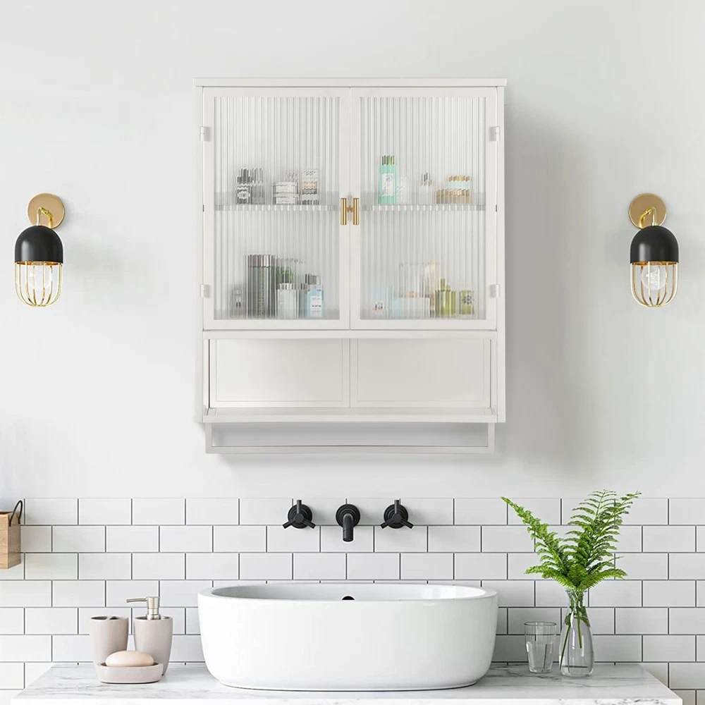 Material: Made of iron and tempered glass, combined with meticulous craftsmanship, the accessories are tightly connected, and the sideboard is stable and durable. Design: This storage cabinet with modern aesthetics adopts a slot glass design, which has excellent transparency but not perspective, making it the best supplement to high-end home decoration. Large Storage Space: The sideboard is equipped with a casual 2 door cabinet with multiple layers of storage space, providing ample storage space for your daily use and keeping it in order. Widely Used: Perfect for living room, kitchen, dining room, office, etc. More items could also be displayed on the top of it. Customer Service: Our mission is providing the great customer service to satisfy our customers. Thus, if any issues regarding this product, please feel free to contact US.